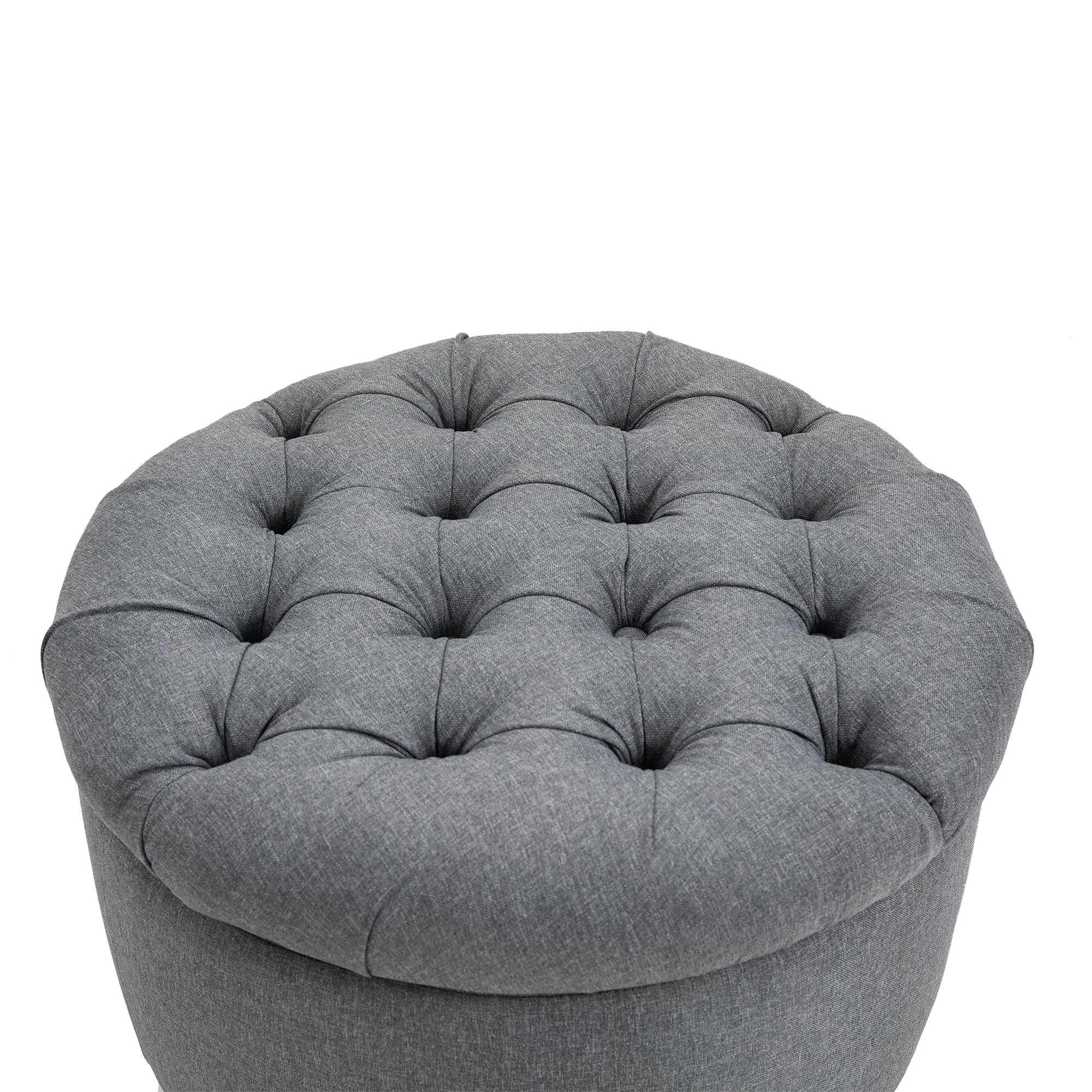 Round Linen-touch Fabric Storage Footstool Ottoman Button Tufted Footrest with Removable Lid, Grey