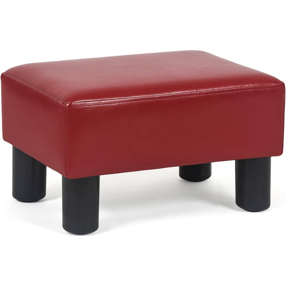 15" Faux Leather Seat Footstool Small Ottoman for Foot Rest, Square Ottoman Bench for Living Room, Burgundy Red