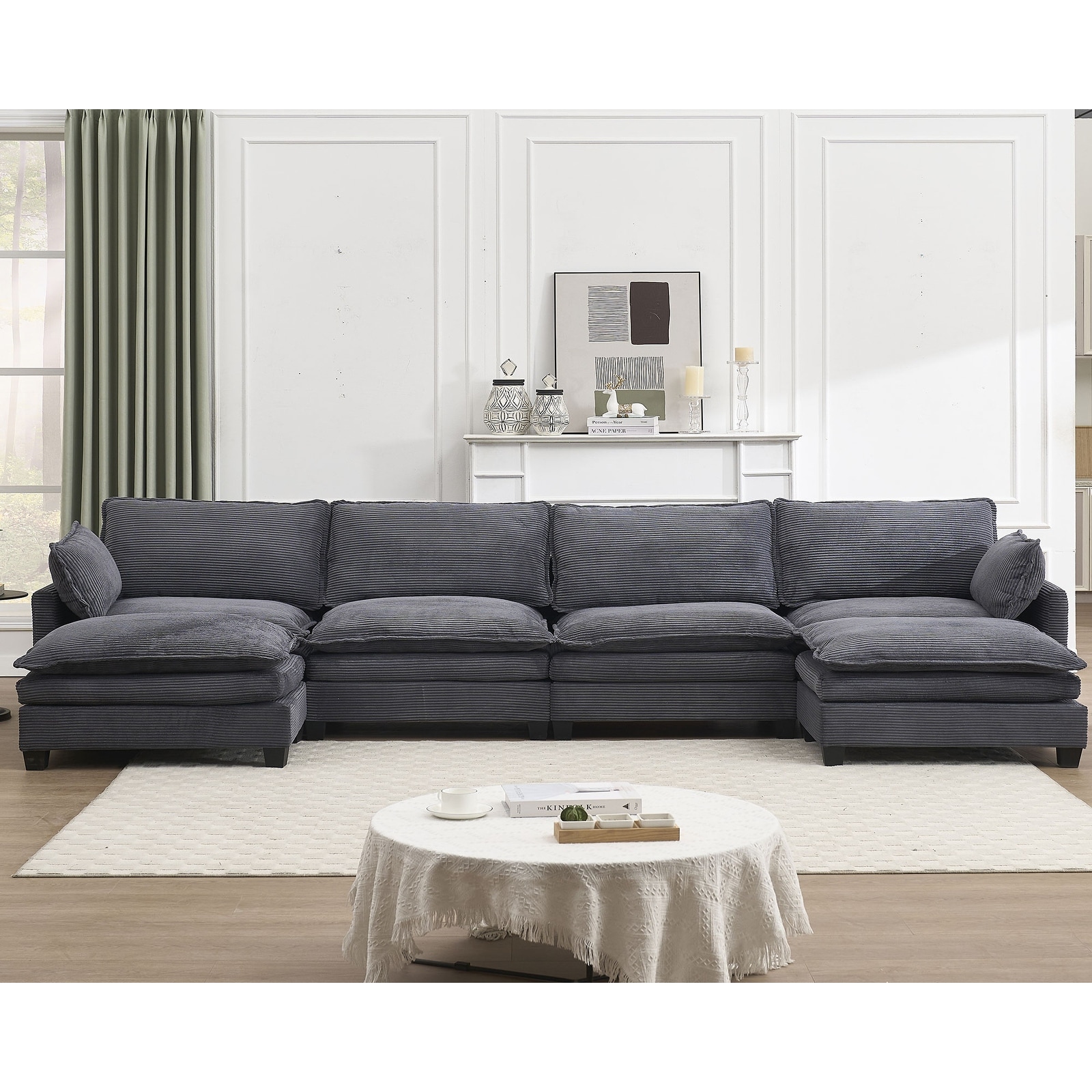 Oversized Modular Sofa , Velvet Large U-Shaped Couch Comfy Upholstered 4-Seat Sofa with 2 Ottoman,2 Lumbar Pillow, Deep Seat Co