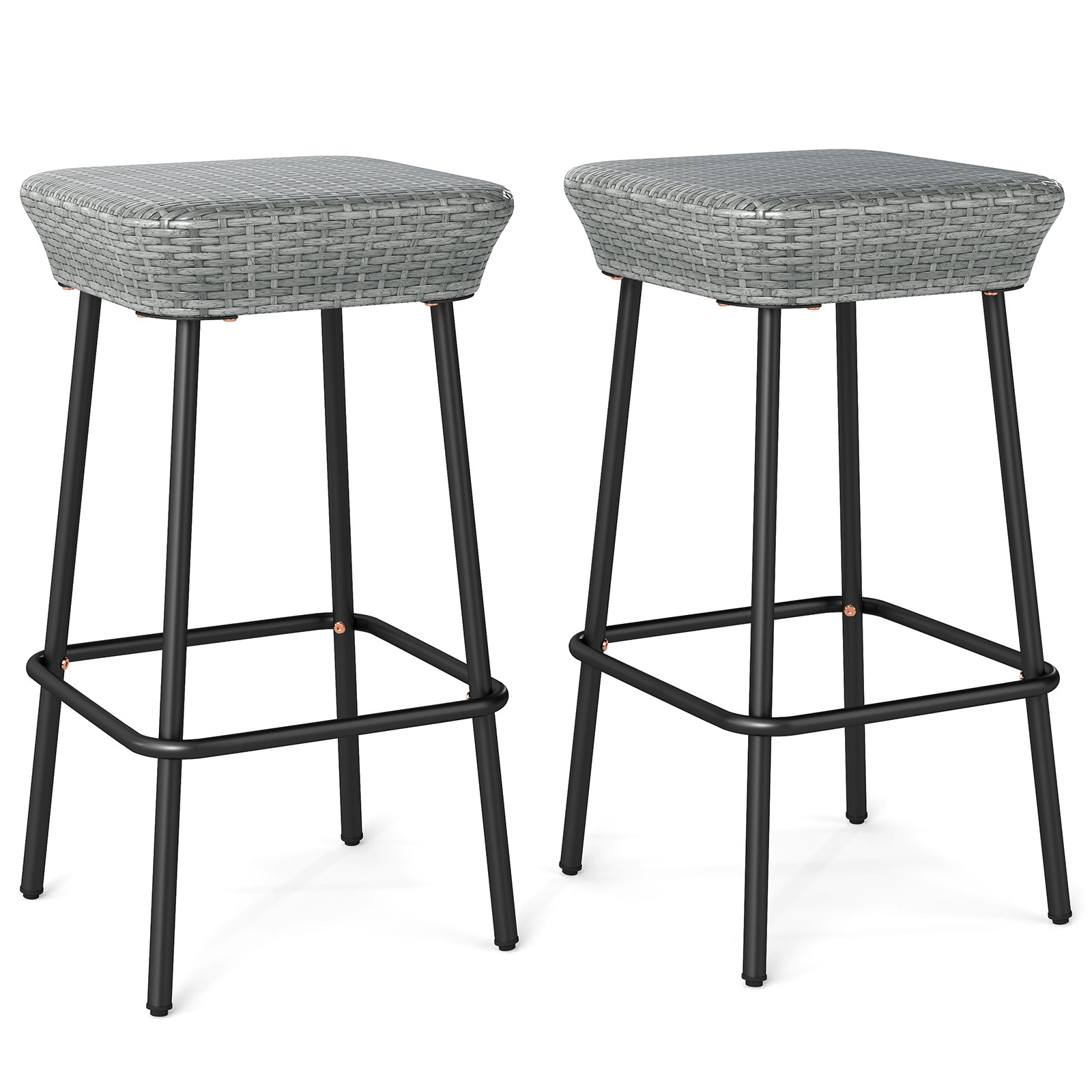 Outdoor PE Wicker Ottoman Set With Removable Cushions, Durable Patio Footstools For Seating, Lounging, Or Entertaining Outdoor PE Wicker Ottoman Set With Removable Cushions, Durable Patio Footstools For Seating, Lounging, Or Entertaining