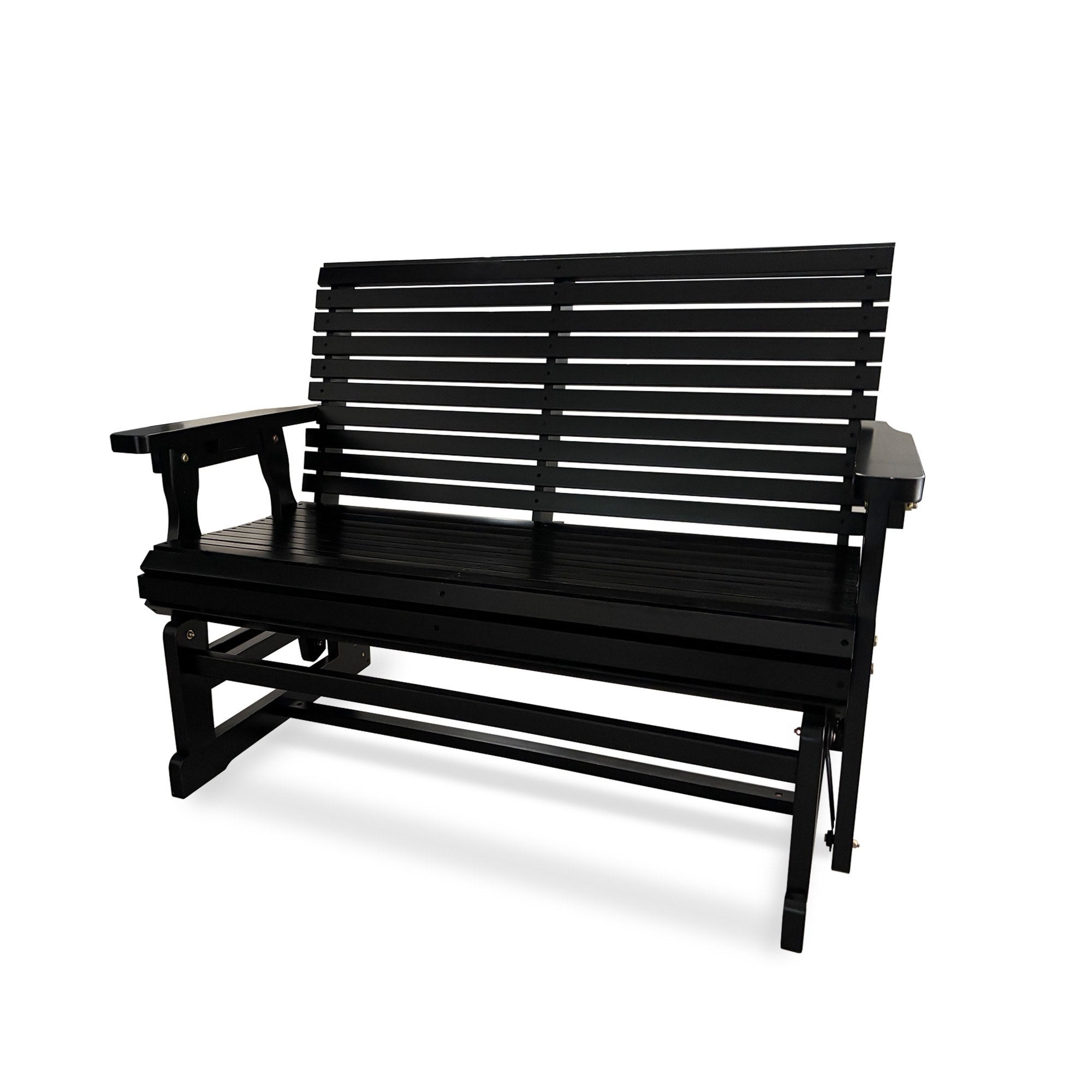 Fortune Candy 2-Seater Wooden Patio Glider Bench, Roll Back Design, 800 lb Capacity (Black)