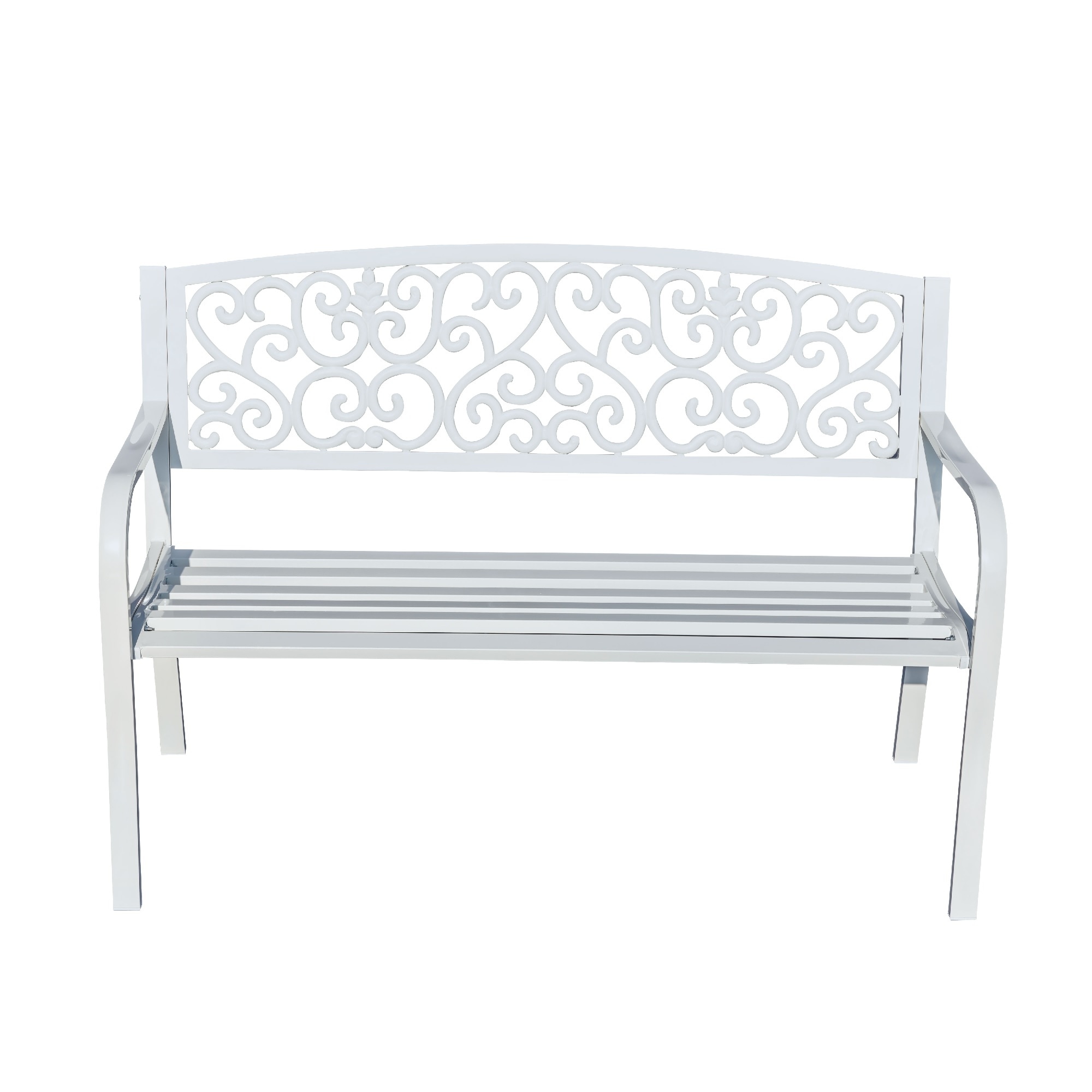 Scroll Pattern Cast Iron Outdoor Garden Bench - 50" - White