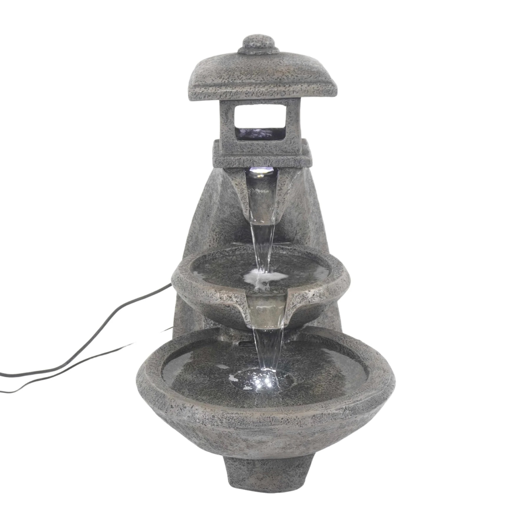 26" LED Lighted Pagoda Three-Tiered Outdoor Garden Water Fountain
