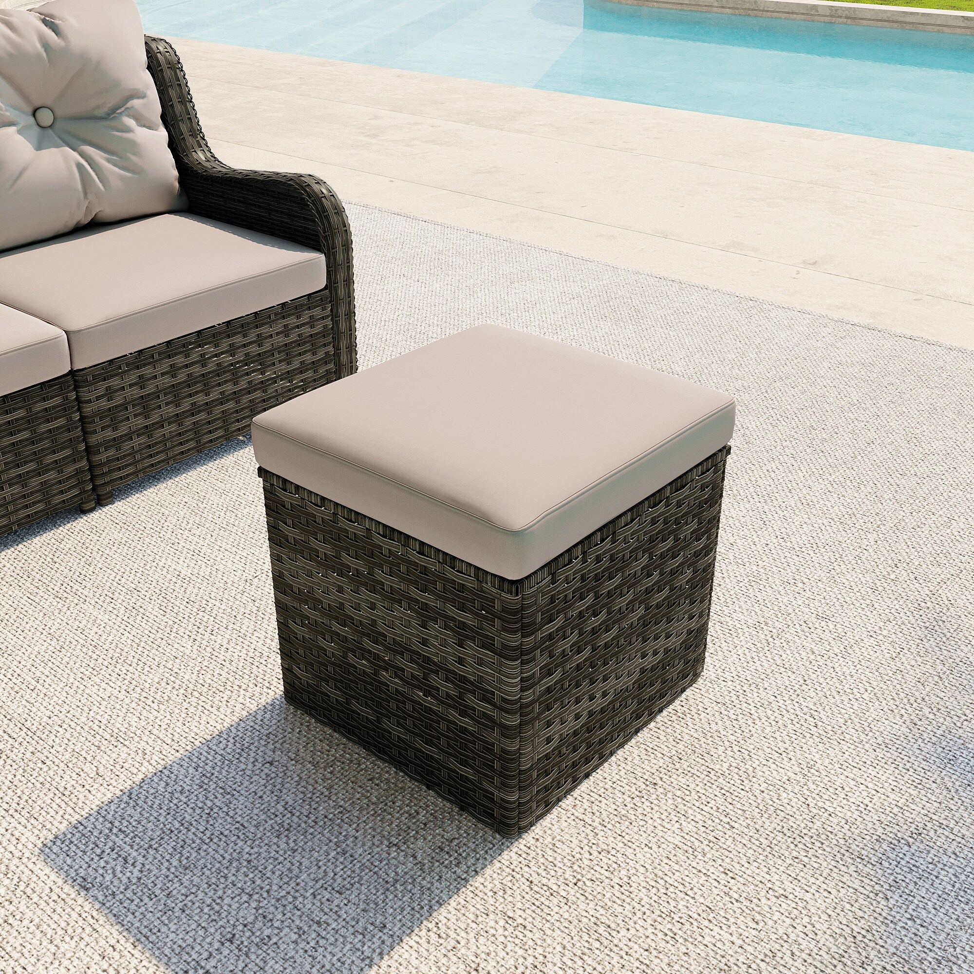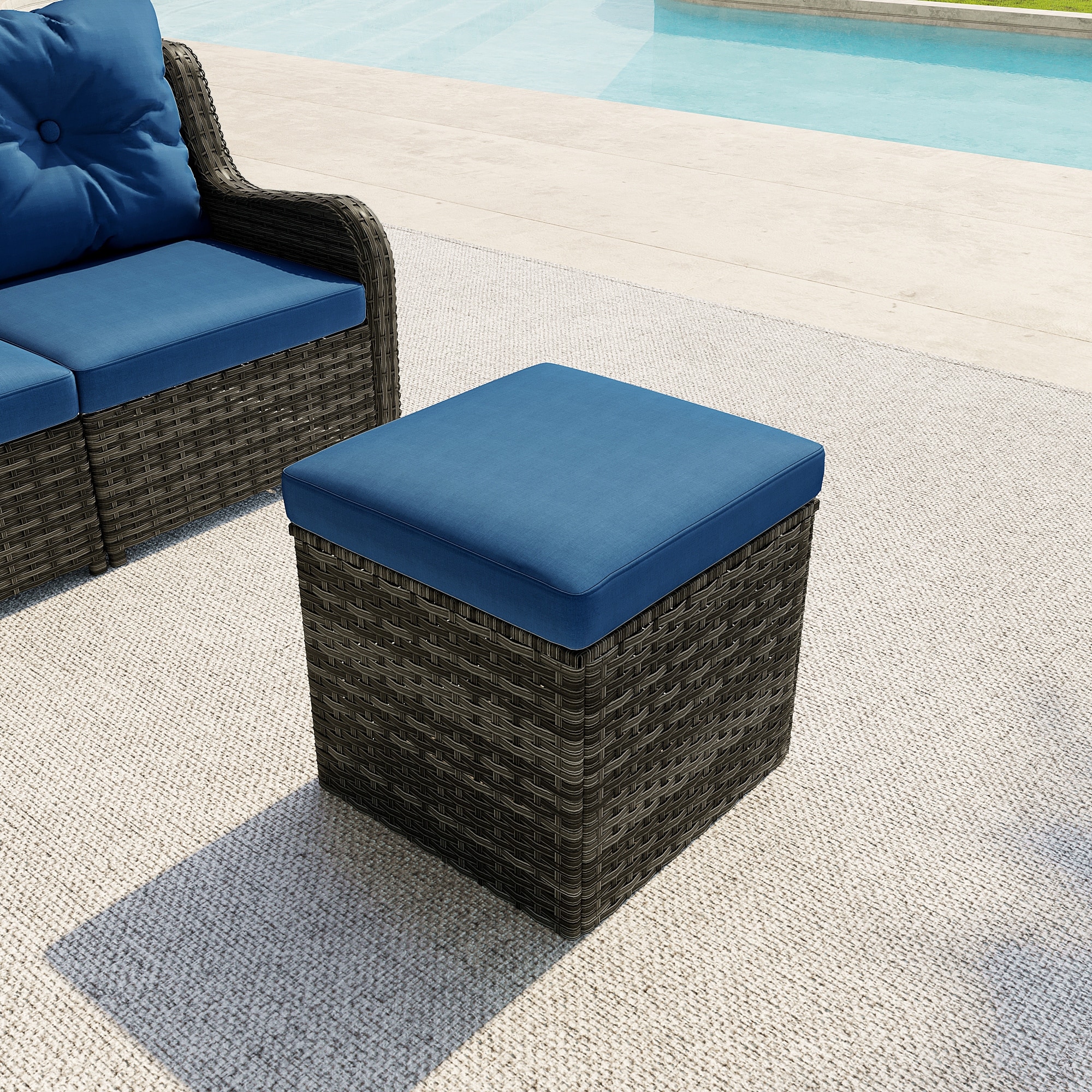 Outdoor Patio PE Wicker Ottoman with Cushion