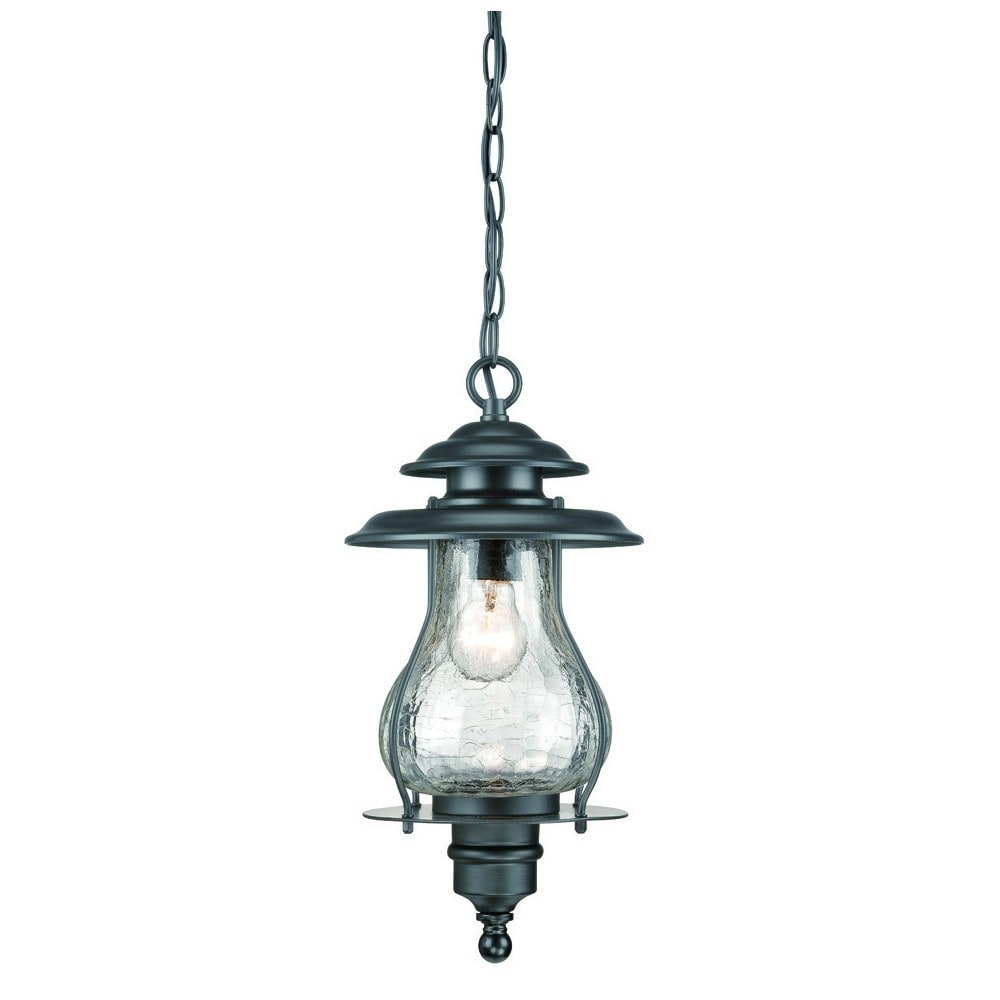 1-Light Matte Black Outdoor Pendant Light with Clear Glass Shade