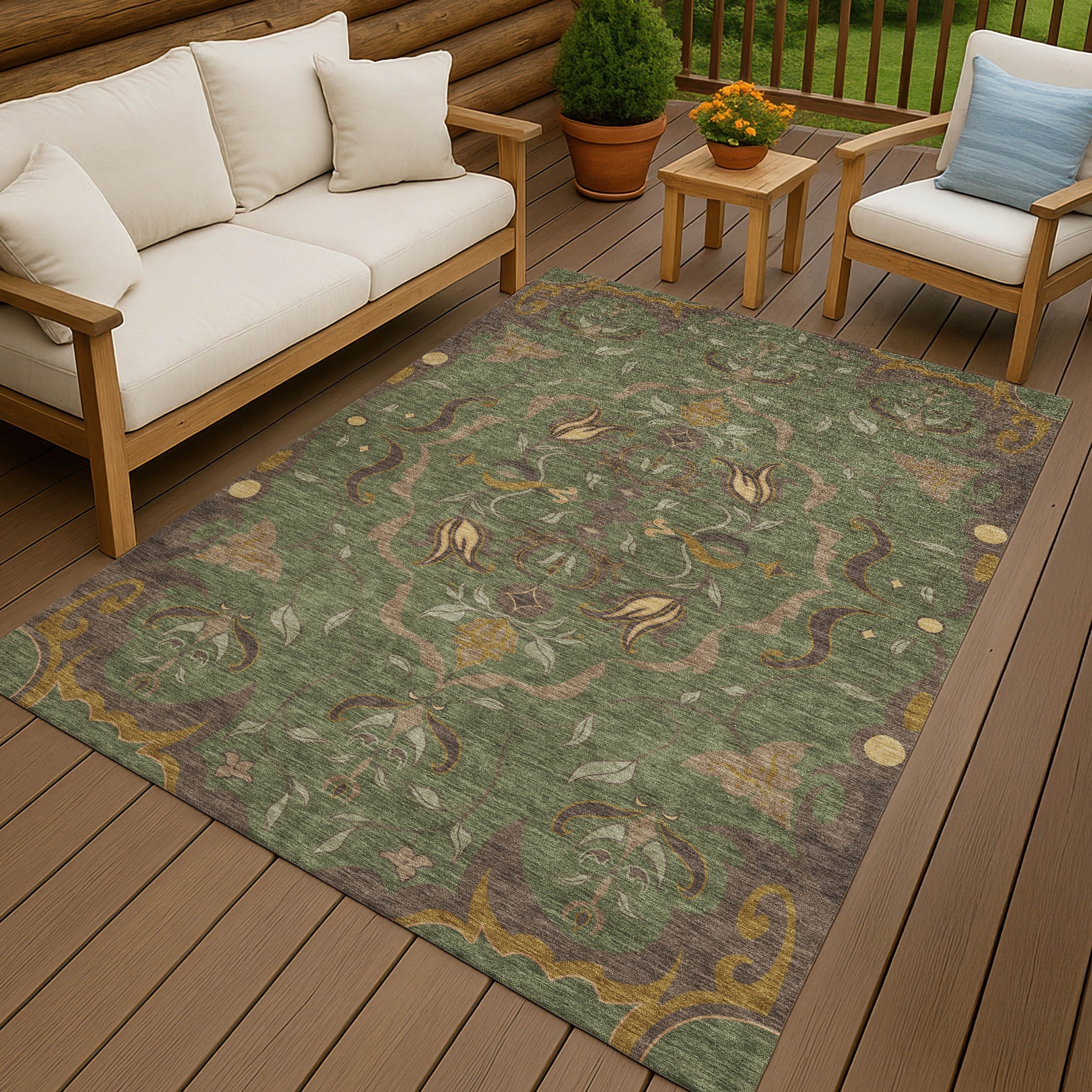 Machine Washable Indoor/ Outdoor Traditional Florence Chantille Rug
