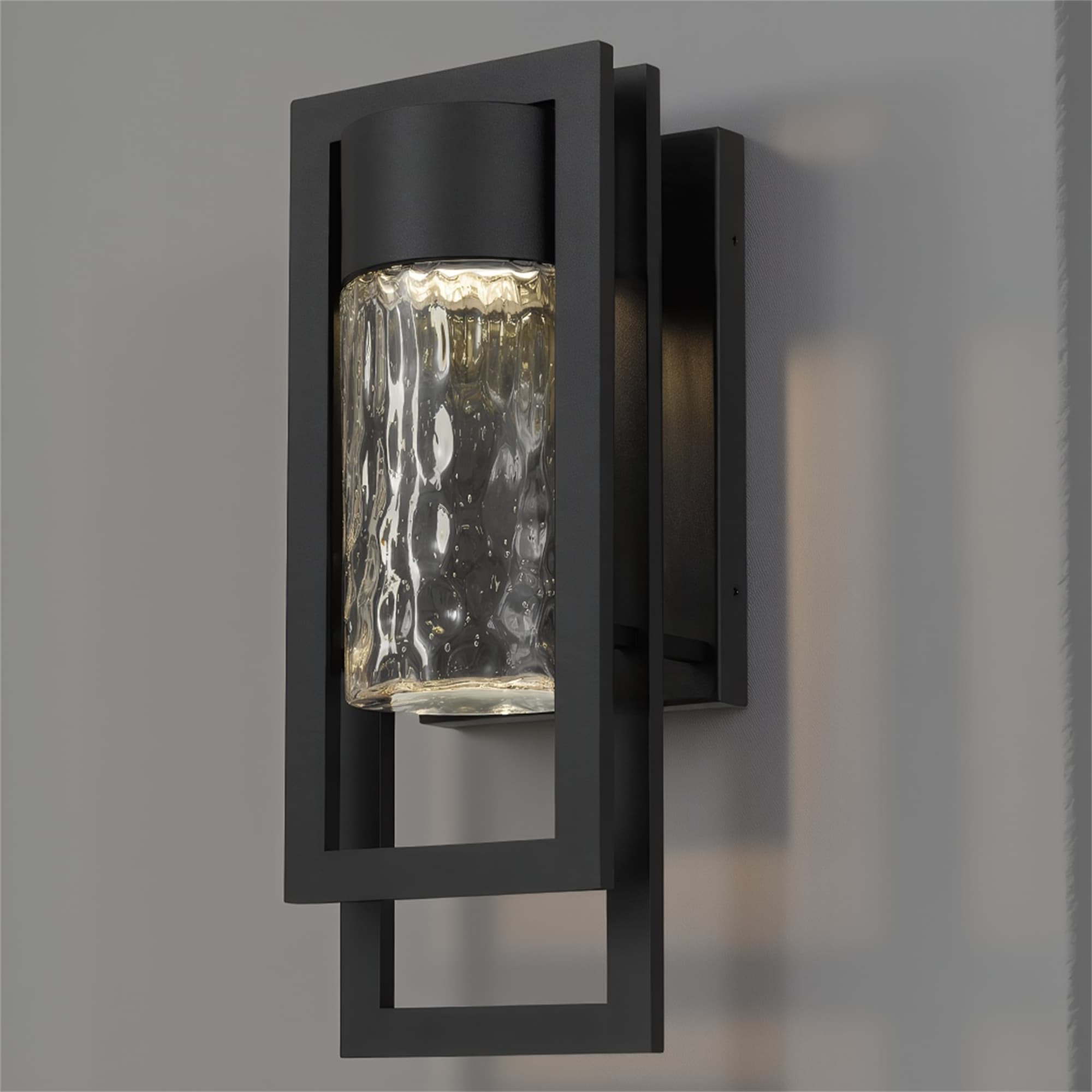 Modern 1-Light Integrated LED 3000K Warm Light Outdoor Wall Sconce with Seeded Glass