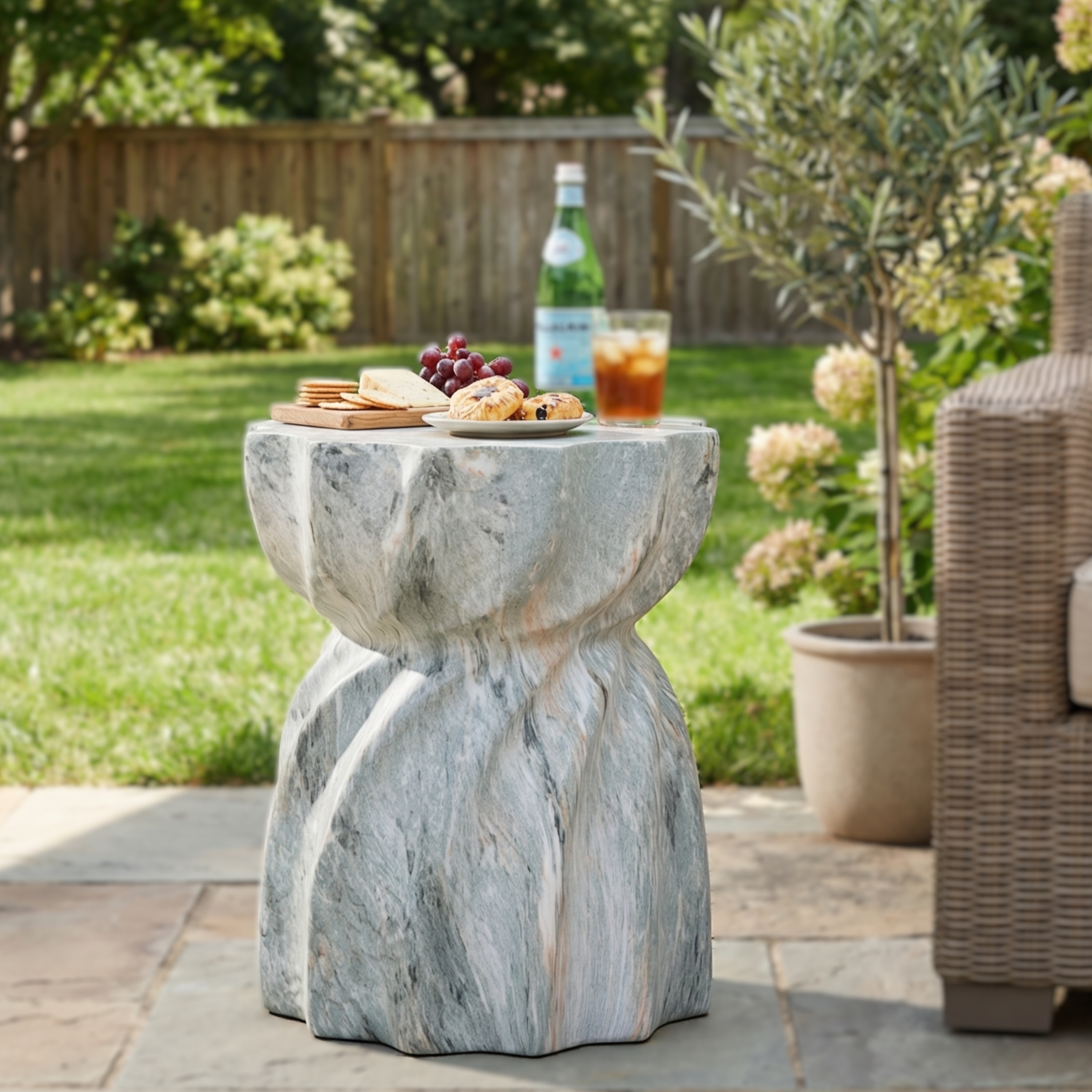 Classic Home Givens Outdoor Concrete Accent Table - 13.78 W x13.78 D x 19.69 H