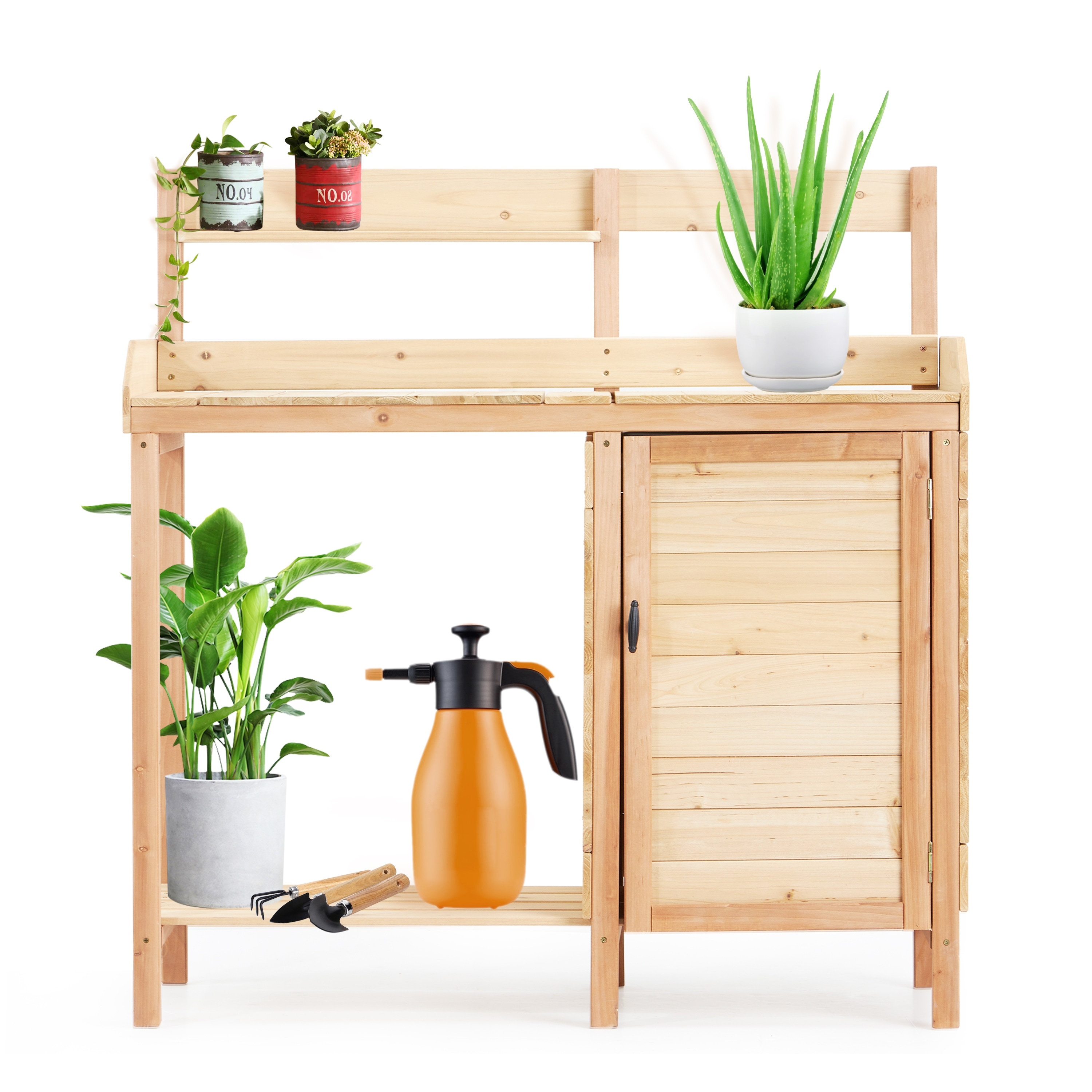 Anmytek Wooden Potting Bench Table with Sink and Storage Shelves Outdoor Garden Workstation for Patio - 42*17*43.5