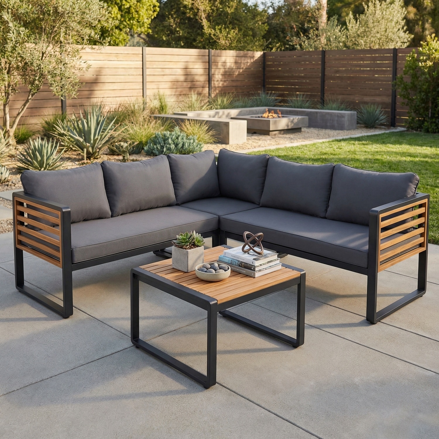 4-Piece Outdoor Metal L-Shaped Conversation Sofa Set with Coffee Table
