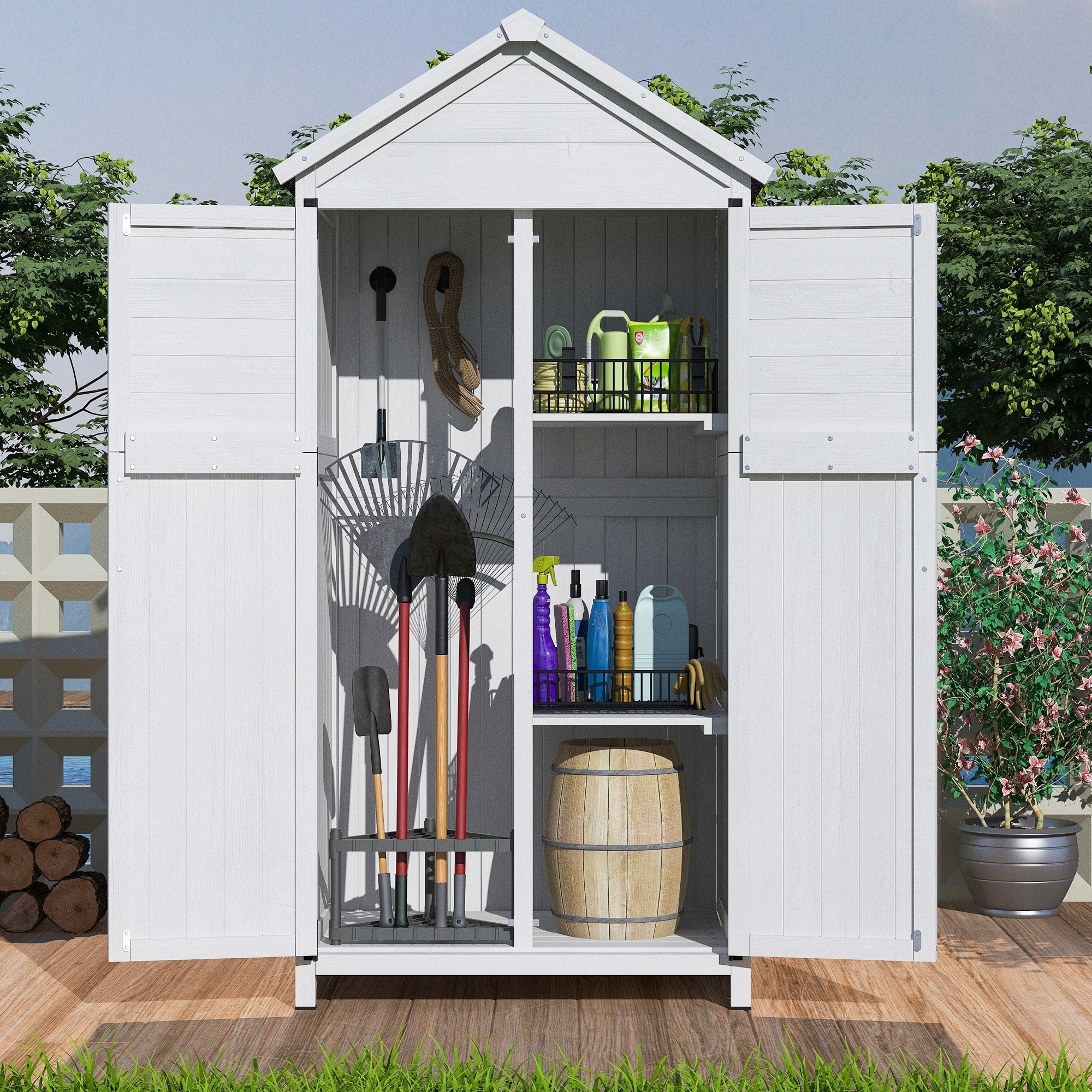 5x3FT Outdoor Plastic Tool Shed with Double Lockable Doors & Gable Roof, Outside Garden Shed
