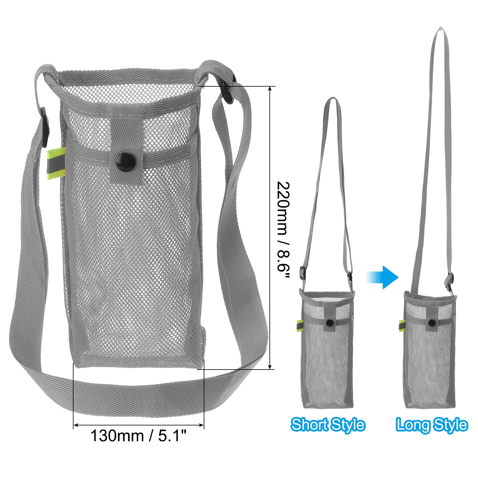 Water Bottle Bag, Mesh Portable Bottle Holder Carrier Adjustable Shoulder Strap for Sports Hiking Camping