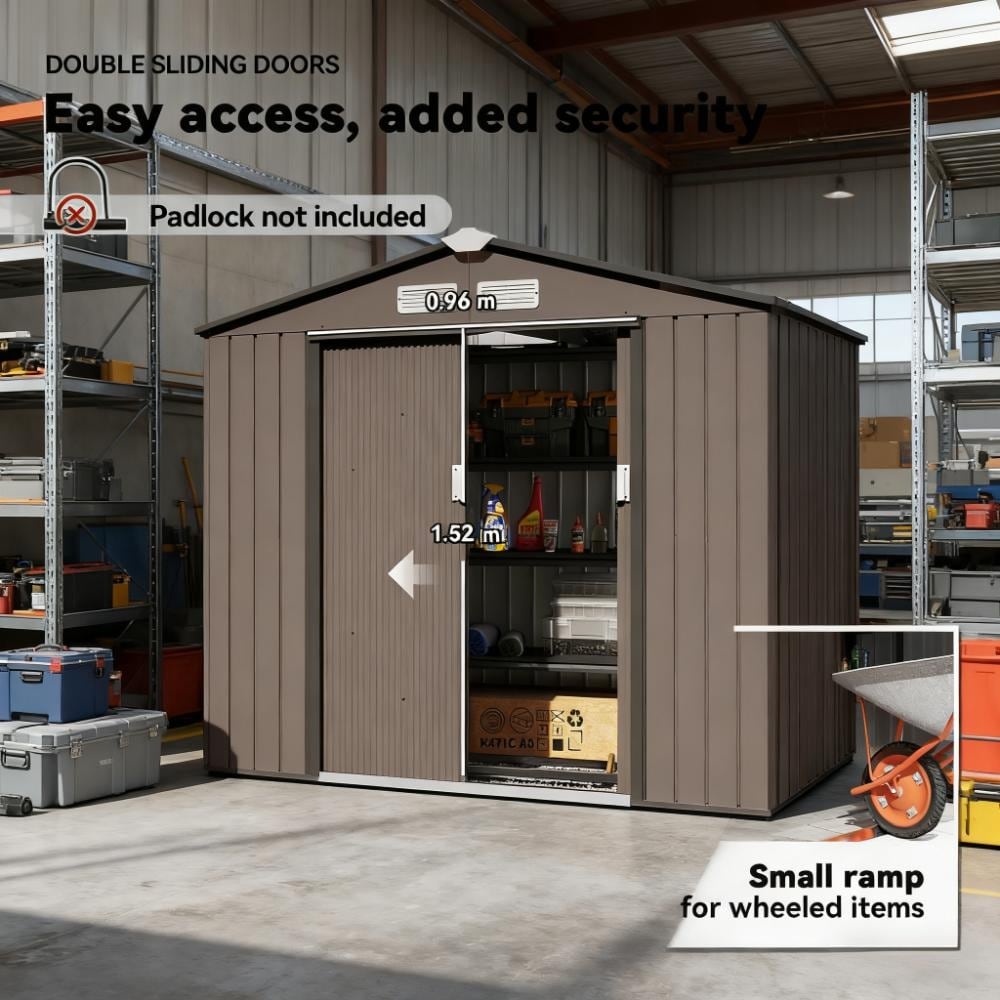 Upgraded 8x6ft Outdoor Resin Garden Shed, Floor & 2 Windows, Lockable Door for Garden Tools, Bicycles, Trash Cans