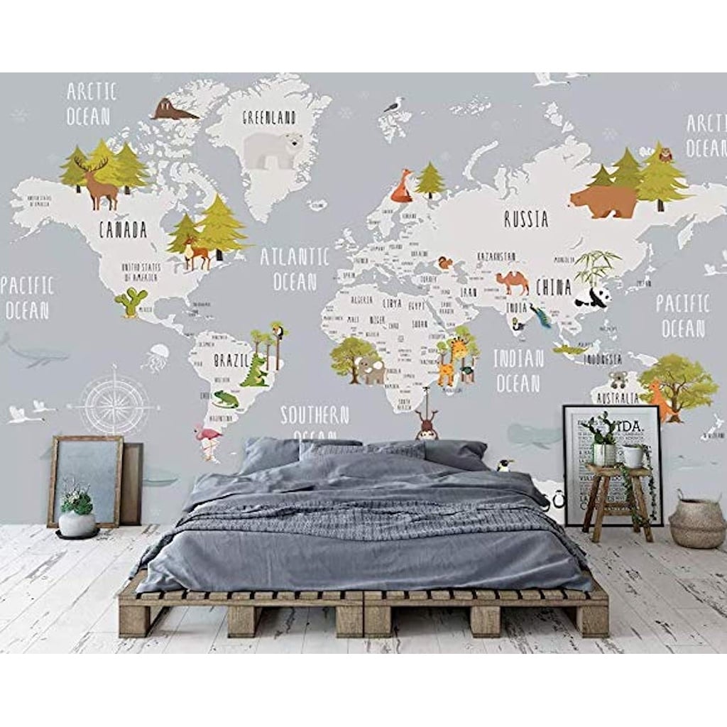 GK Wall Design World Map and Animal Kids Removable Wallpaper