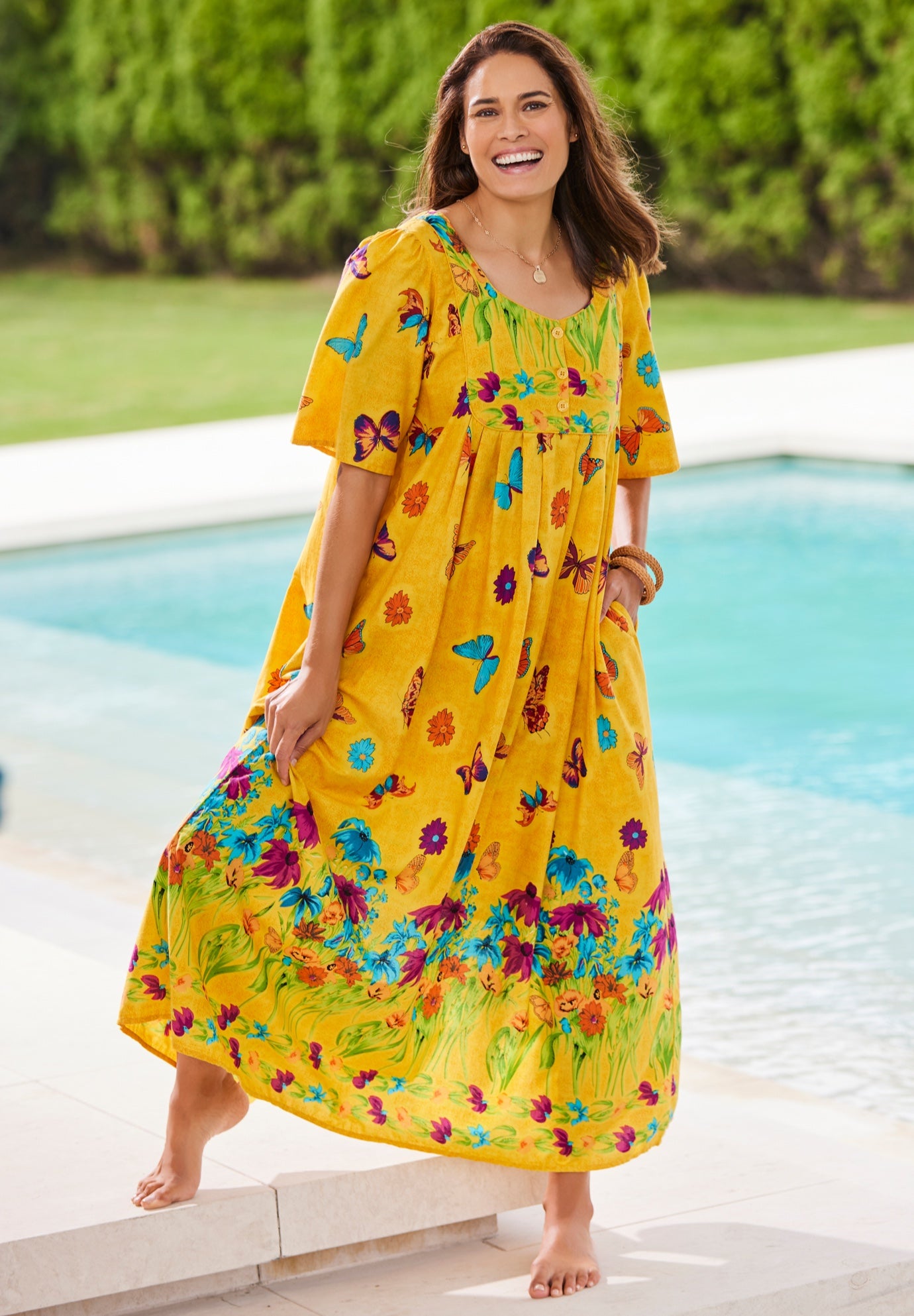 Plus Size Women's Bib Front Lounger by Only Necessities in Yellow Butterfly (Size M)