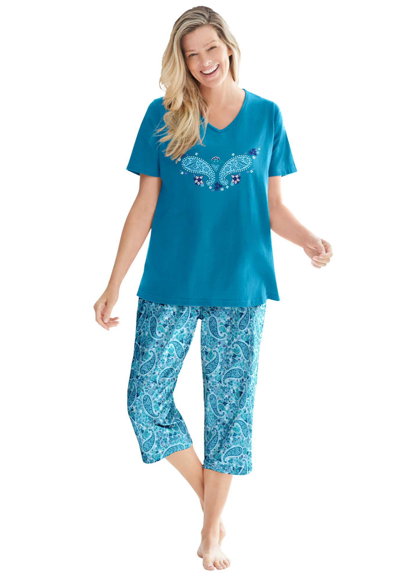Plus Size Women's 2-Piece Capri PJ Set by Dreams & Co. in Pale Ocean Paisley (Size M) Pajamas