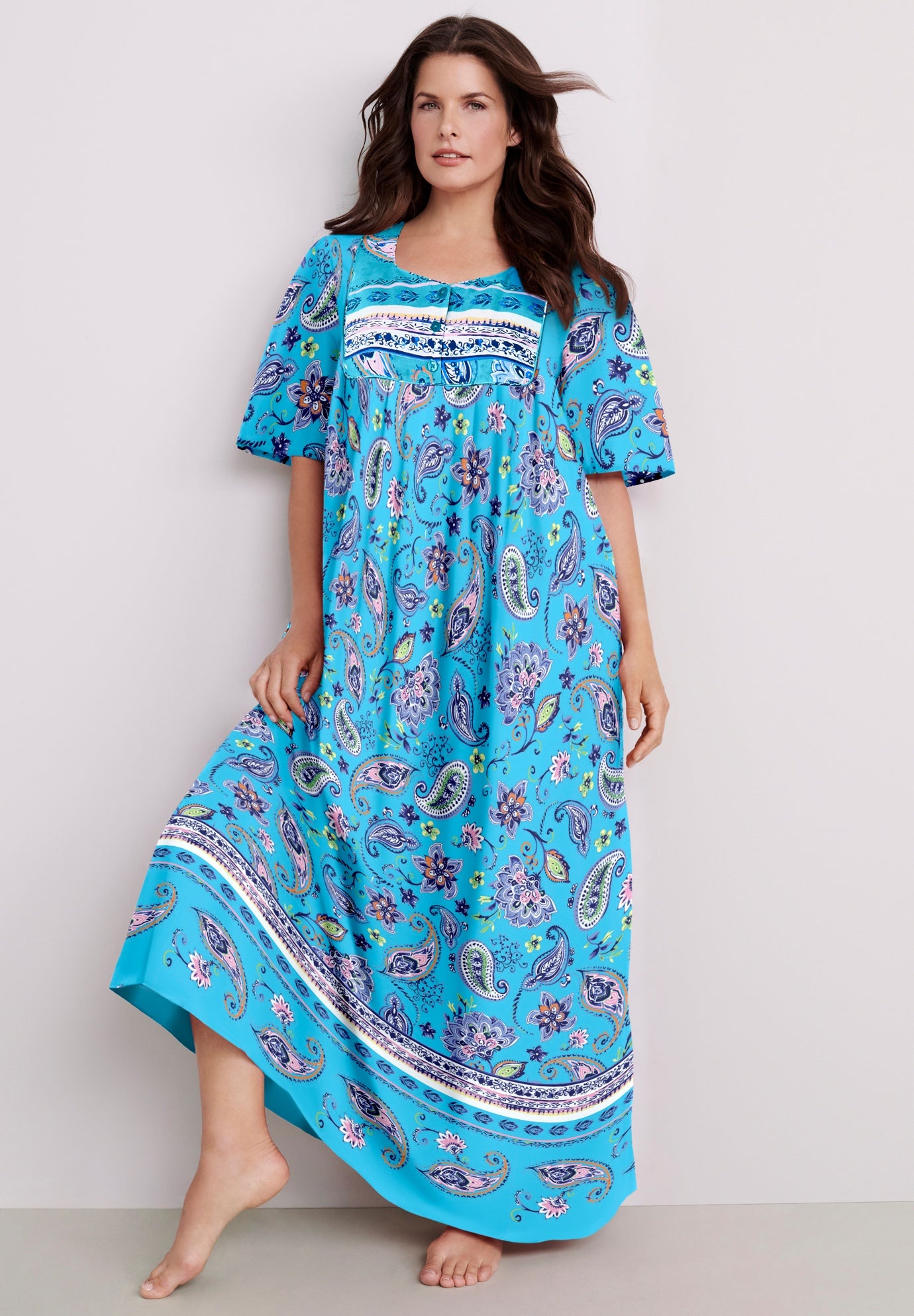 Plus Size Women's Long Floral Print Cotton Gown by Dreams & Co. in Caribbean Blue Roses (Size 1X) Pajamas
