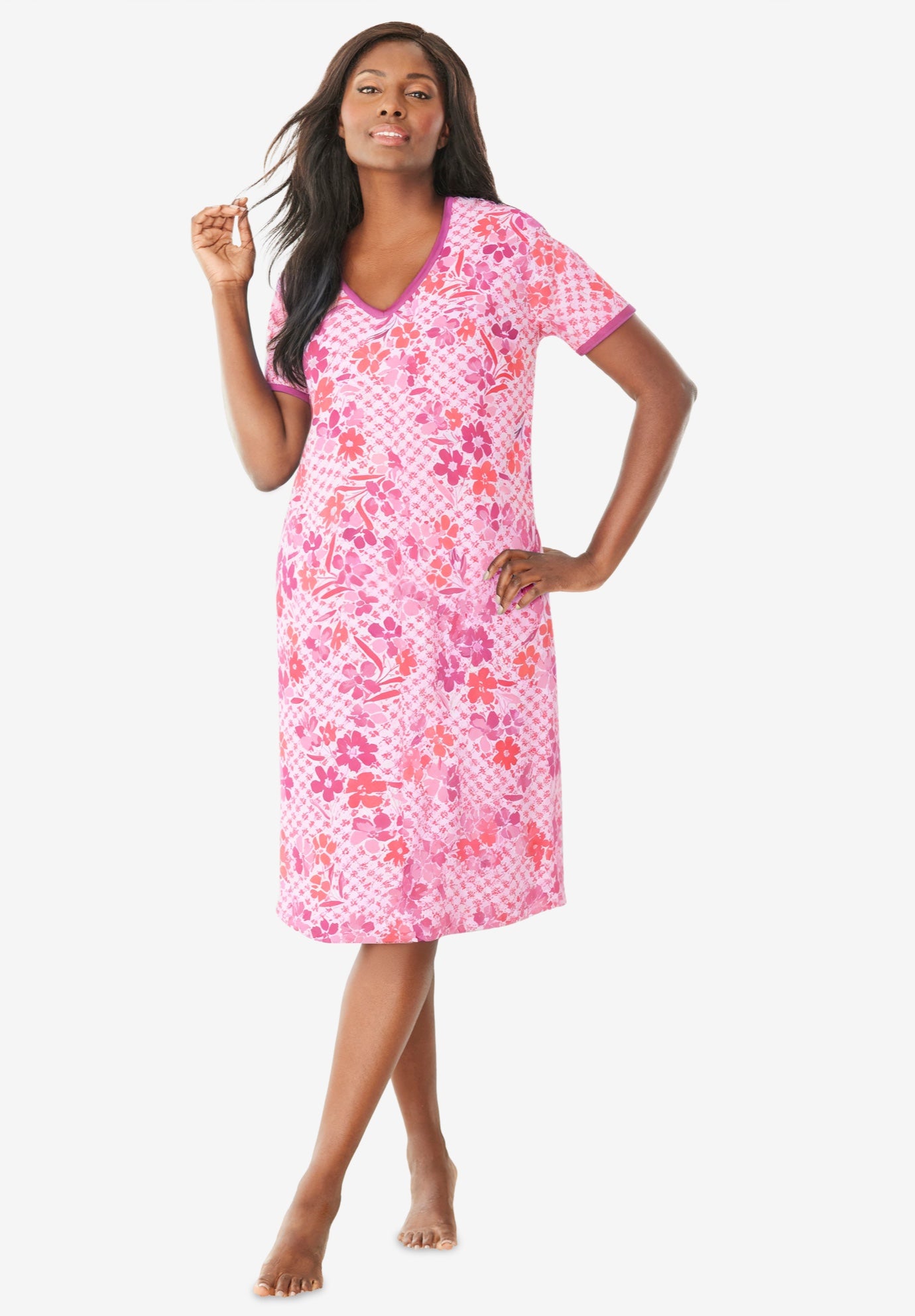 Plus Size Women's Short T-Shirt Lounger by Dreams & Co. in Berry Mosaic Floral (Size S)