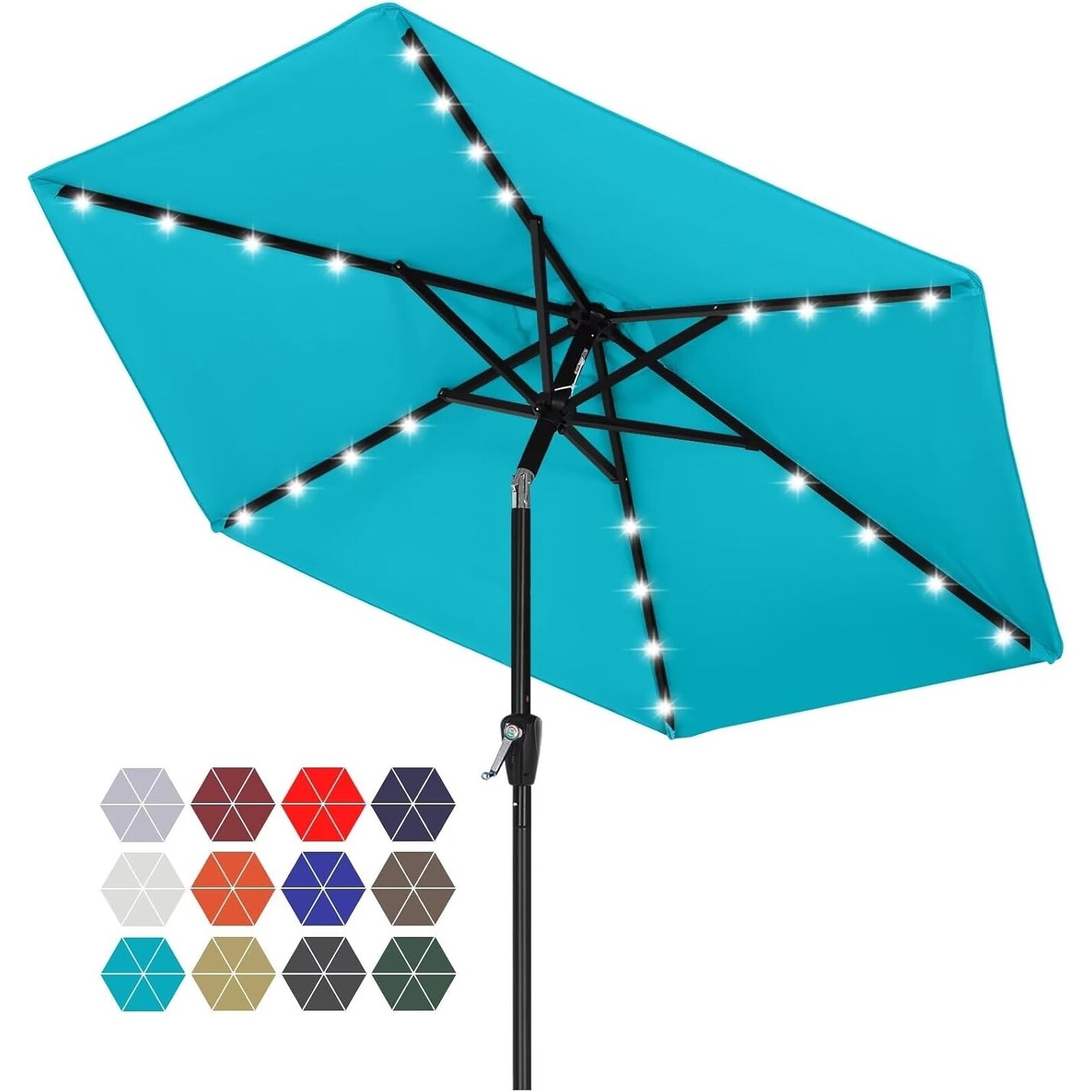 Patio Umbrella with Lights - 10 ft Outdoor Sun Shade Canopy with 32 Solar LEDs by Pure Garden (Bright Blue)