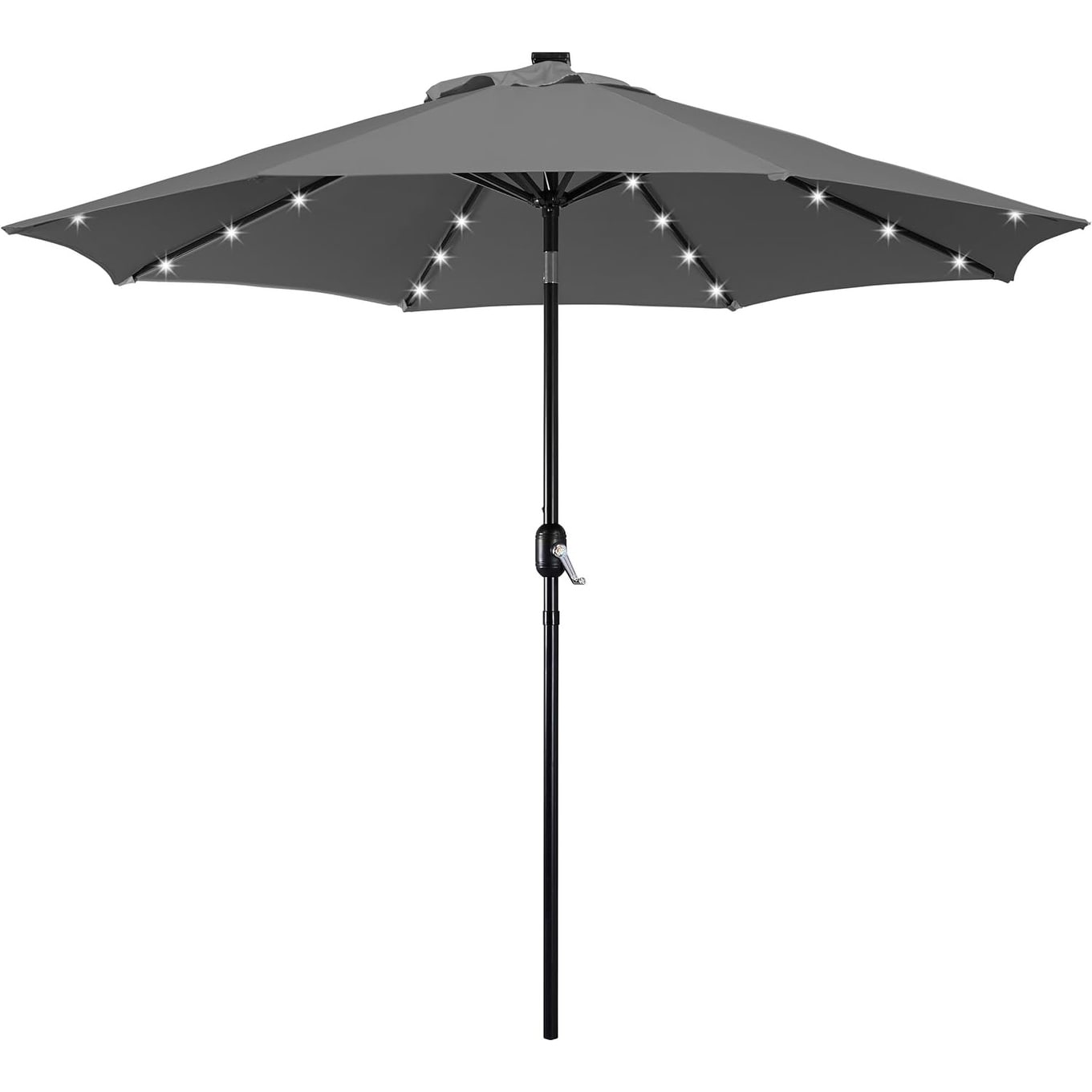 9' Solar-Powered LED Patio Umbrella with Push Button Tilt for Outdoor Use