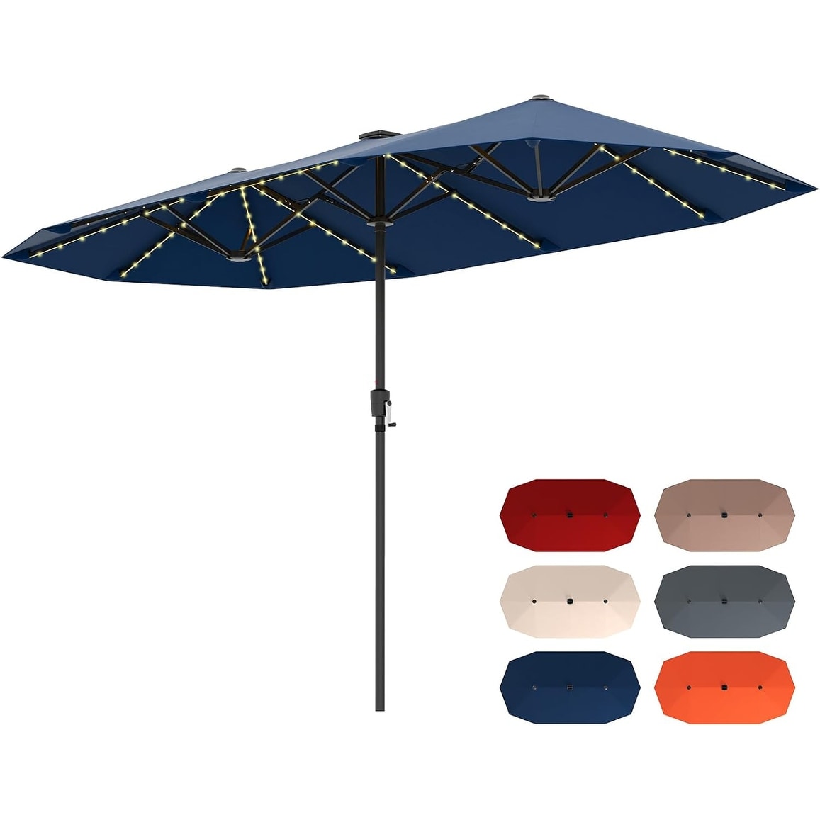 13 Ft Solar Double-Sided Patio Umbrella with 108 LED Lights, Crank Handle, 12 Ribs for Outdoor Use