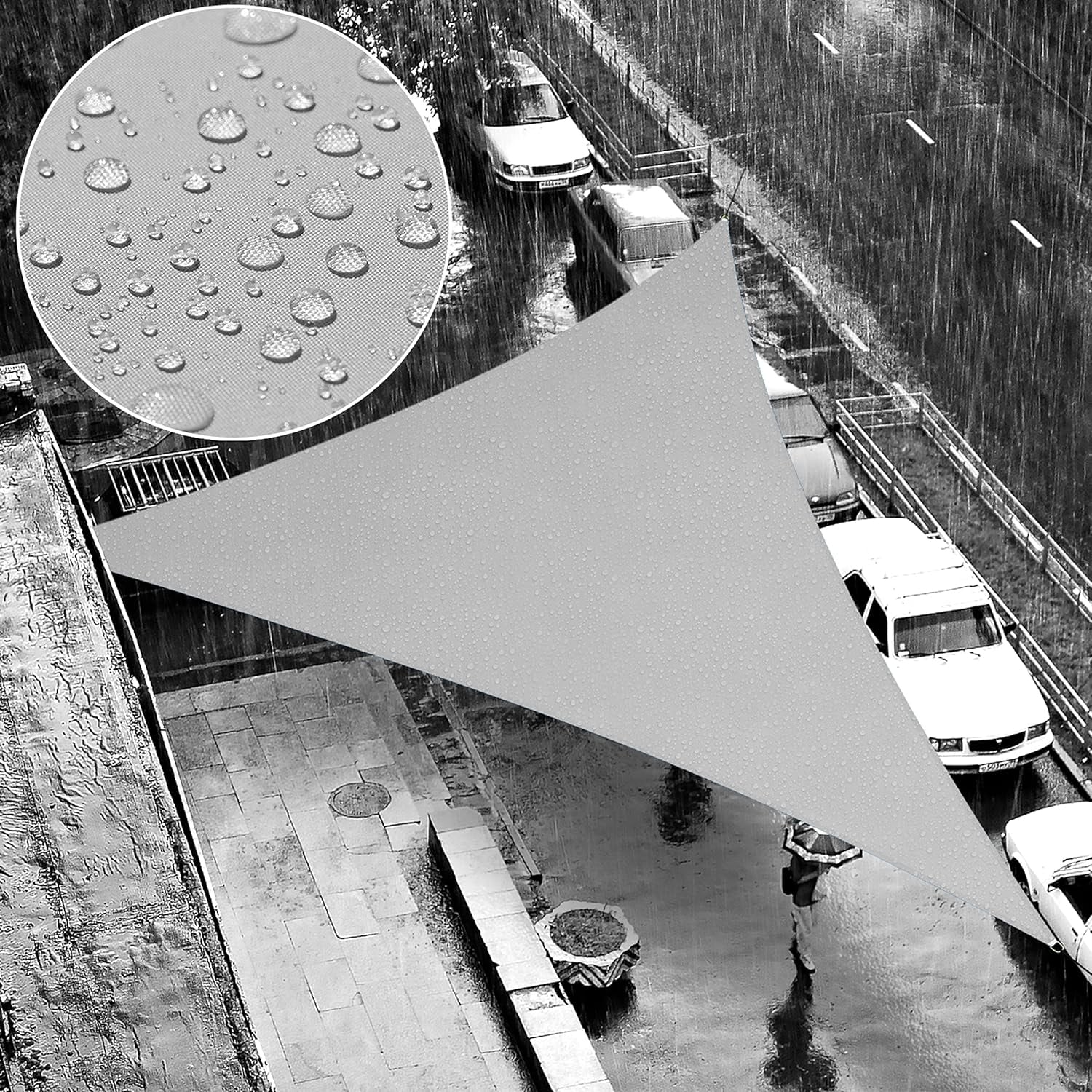 9' x 10' x 13.5' Grey Waterproof Triangle Shade Sail with 95% UV Block for Outdoor Patio Garden Carport