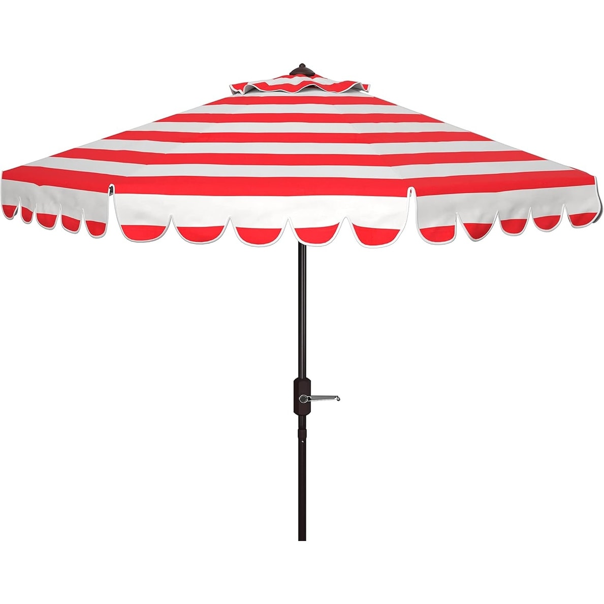 9ft Round Outdoor Patio Umbrella, Red & White Stripe, Crank & Tilt, UV Resistant