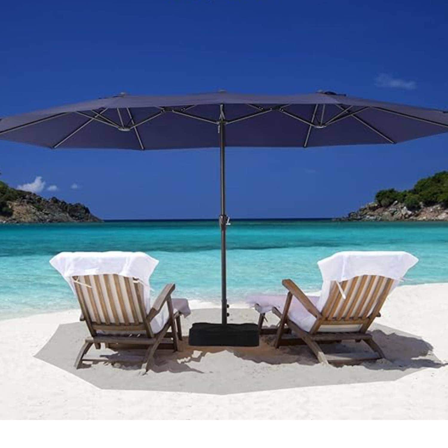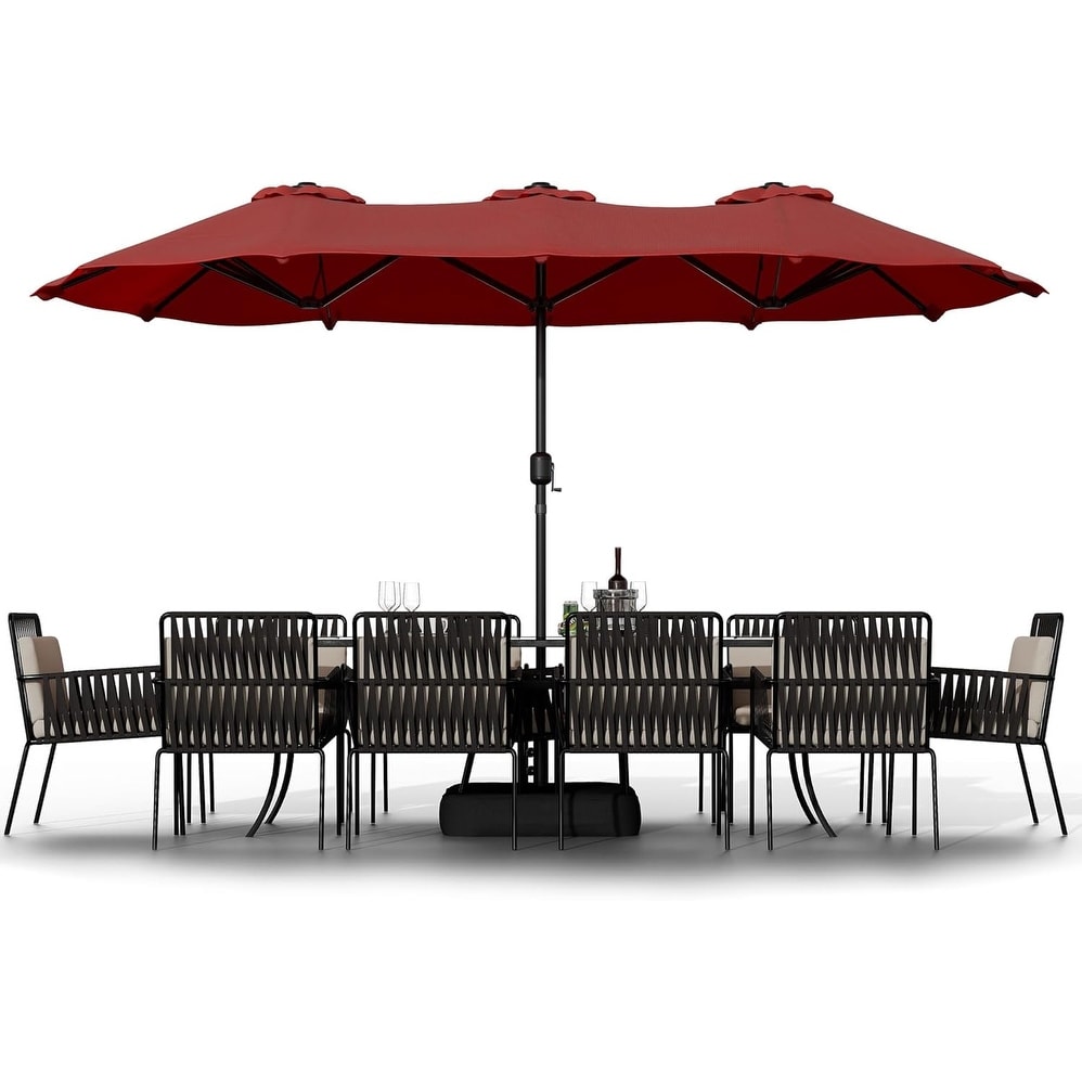 15FT Double Head Patio Umbrella with Base for Garden, Backyard