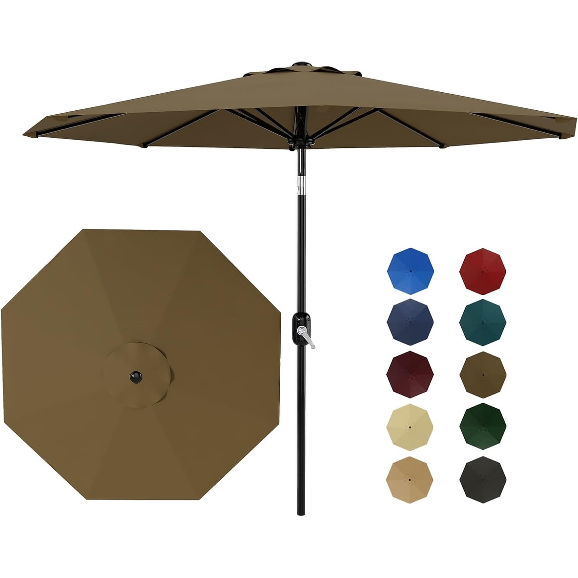 SAFAVIEH Zimmerman 9ft Round Outdoor Patio Umbrella - UV Resistant with Button Tilt