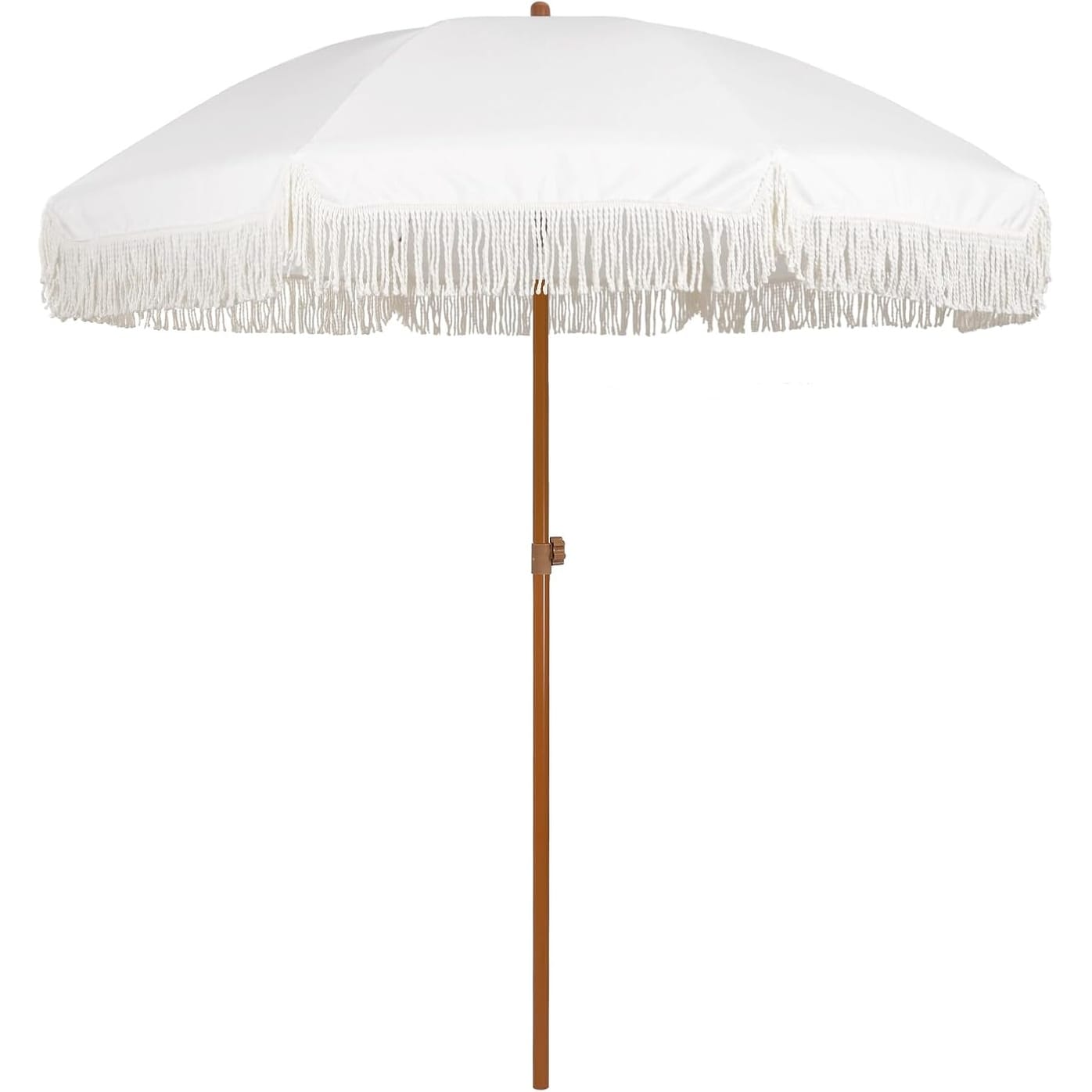 7ft Outdoor Patio Umbrella with Tassel Design, UPF50+ UV Protection, Steel Pole and Ribs, Push Button Tilt, Cream White