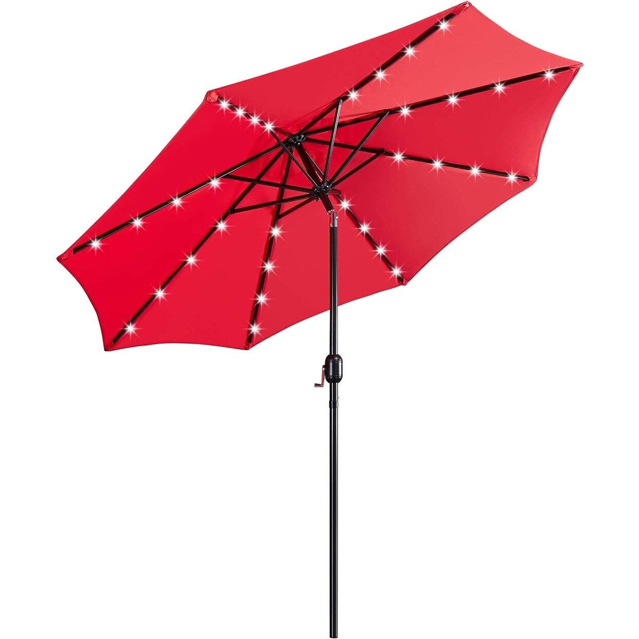 9FT Solar Patio Umbrella with 32 LED Lights, Push Button Tilt & Crank Lift for Outdoor Use