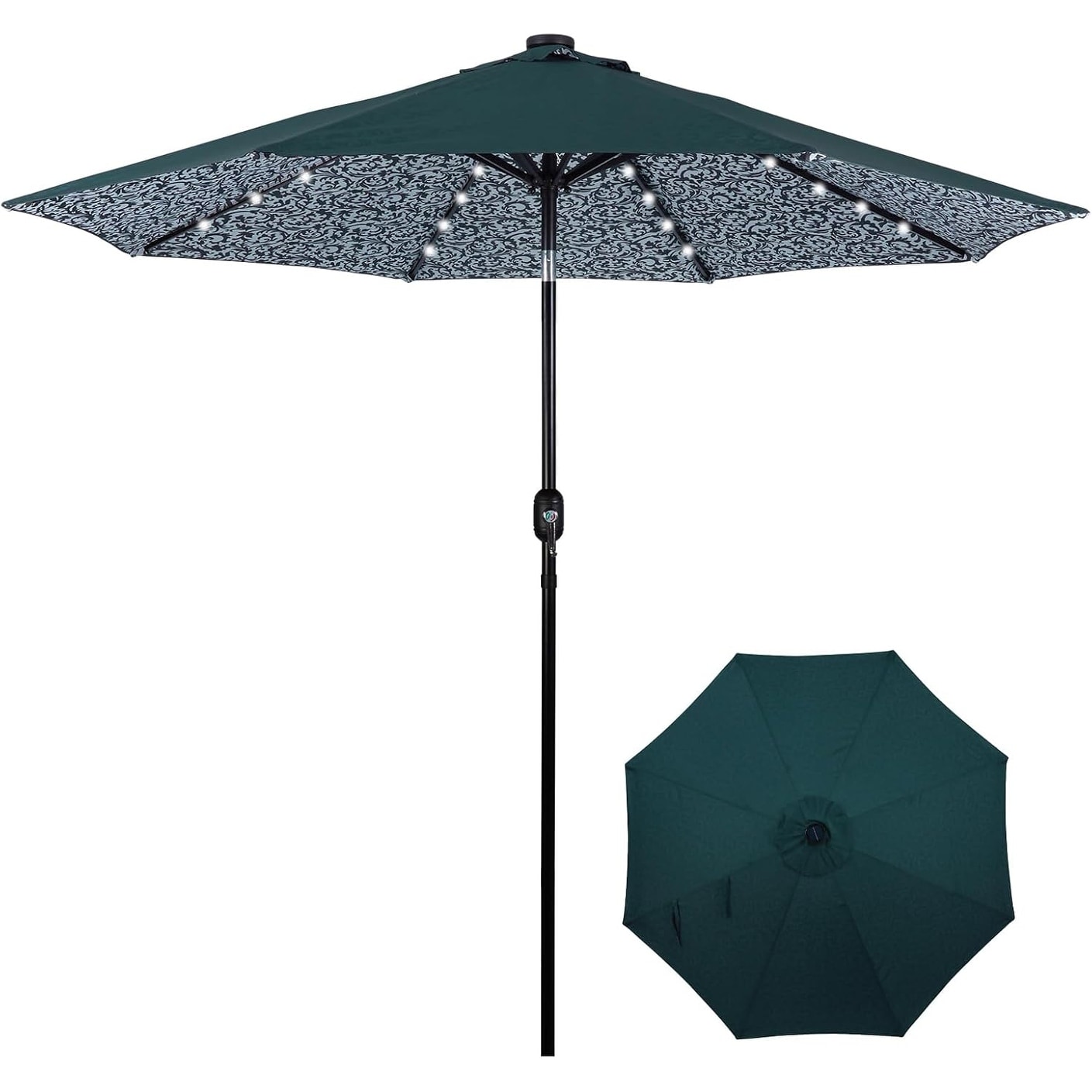 9ft Solar Patio Umbrella with 32 LED Lights, Tilt & Crank, Weather-Resistant Fabric
