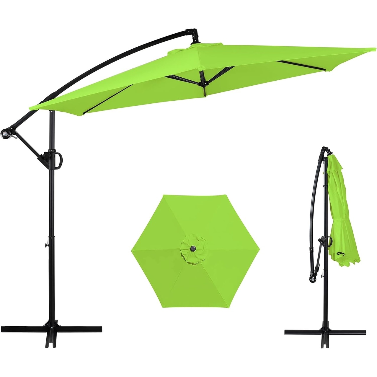 Patio Offset Umbrella with Easy Tilt Adjustment, Crank & Cross Base, 95% UV Protection, Green Outdoor Sunshade Canopy