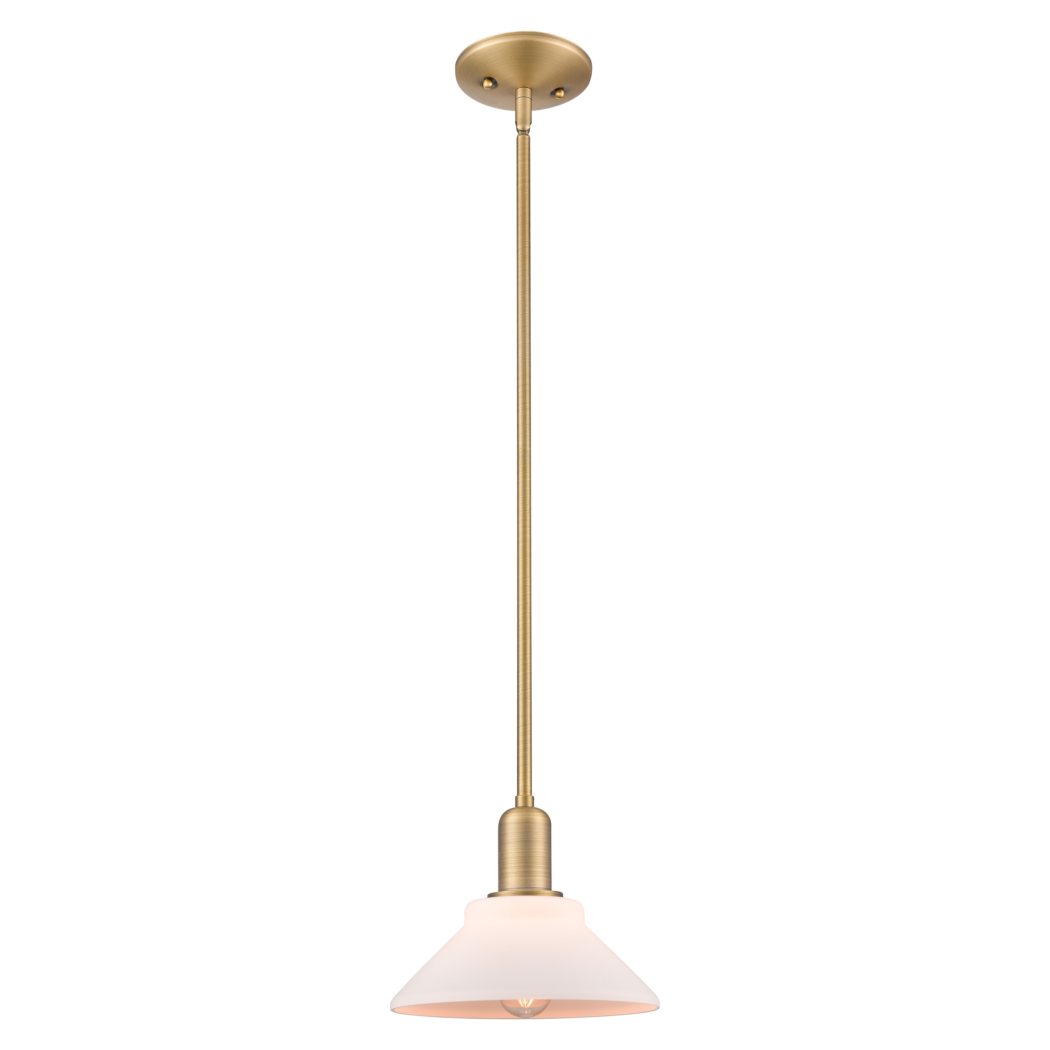 Yep by Golden Lighting Duncan 1-light 9in Rod Hung Pendant in Rubbed Bronze and White shade