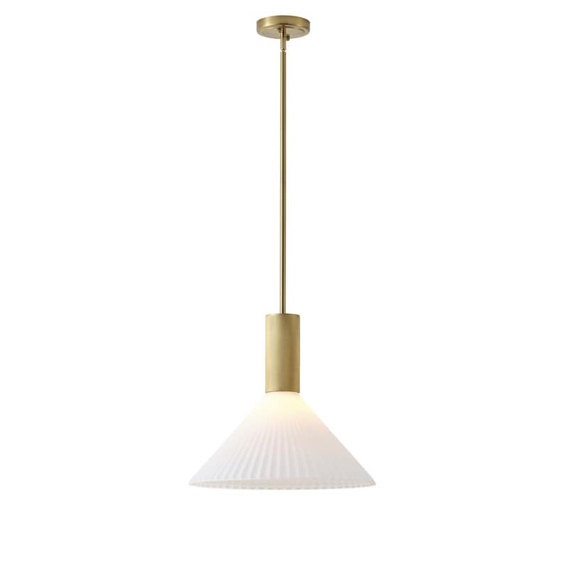 Brass Pendant Light White Jade Acid Washed Glass Adjustable Rod Modern Large Cone
