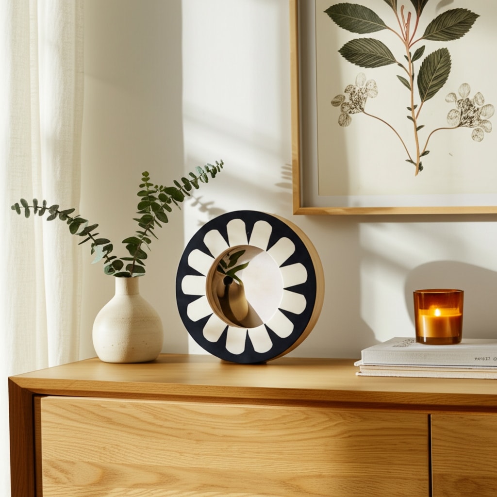 Resin Wood Photo Frame Round Petal Design for Home Office - 1" Ivory