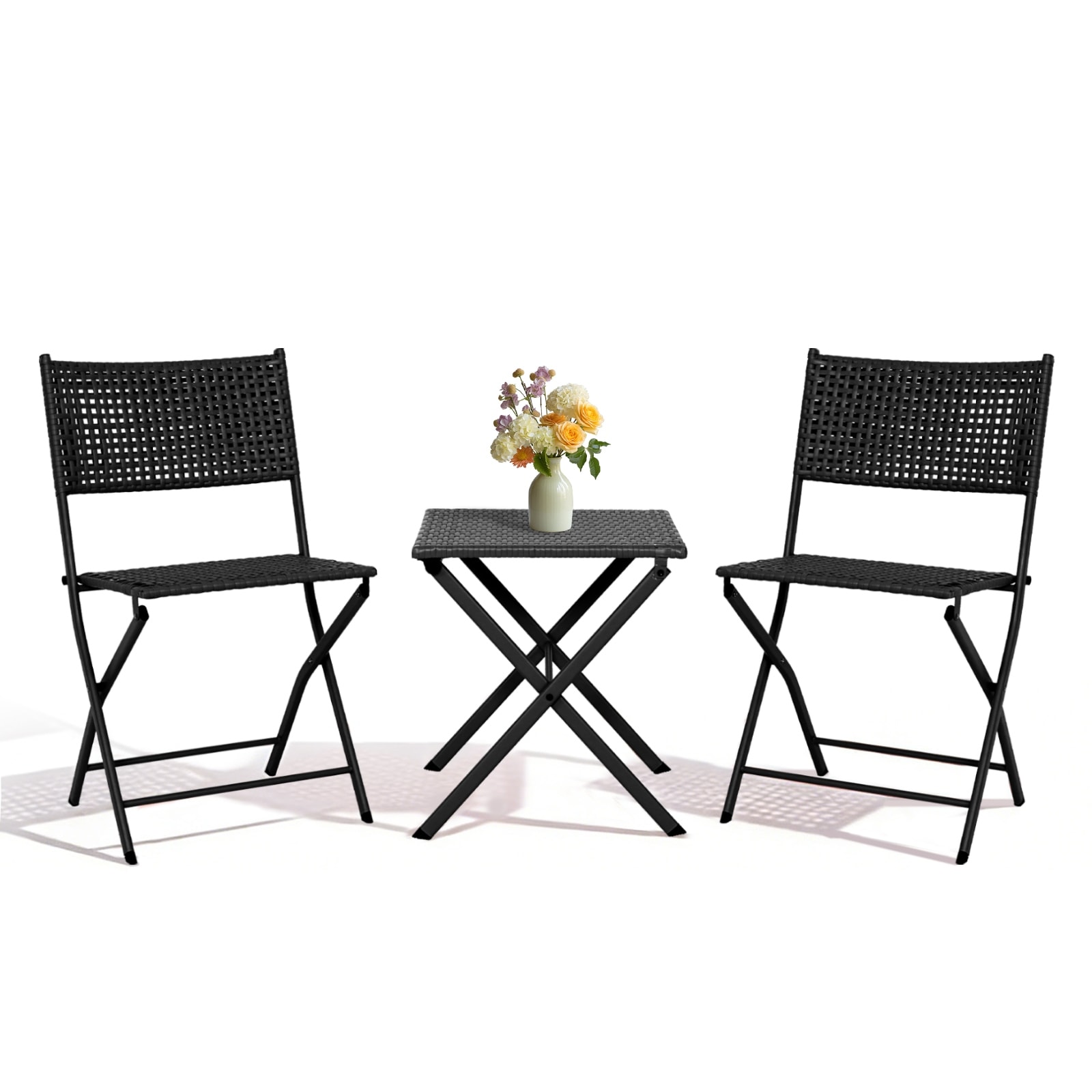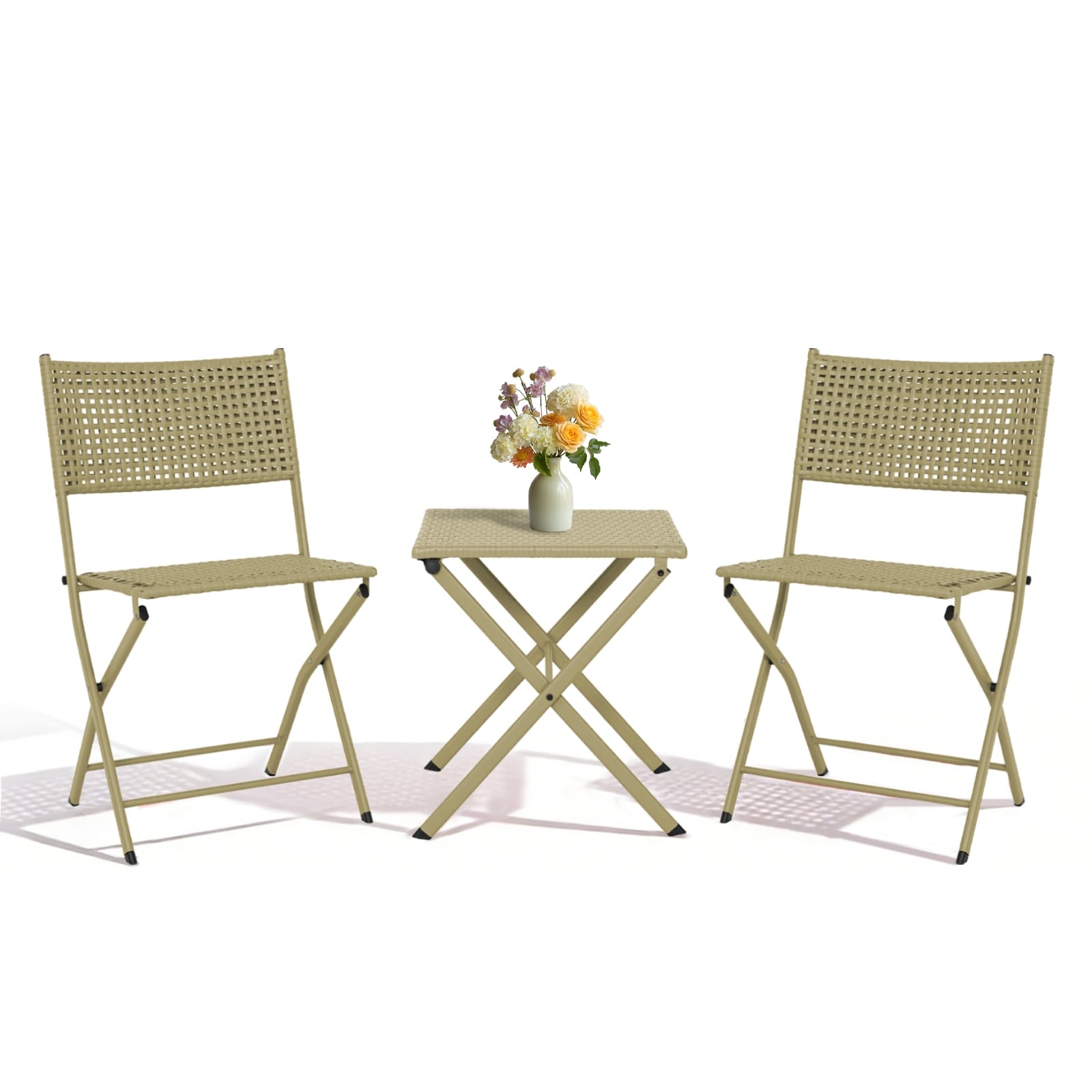 3 Piece Folding Bistro Set Premium Steel Outdoor Furniture Portable Rust-Resistant Patio Table & Chairs