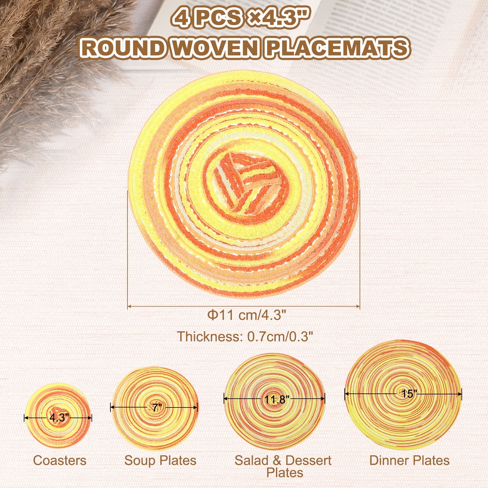 Cotton Trivets Set, 4 PCS 7" Thicken Woven Heat Resistant Mats
