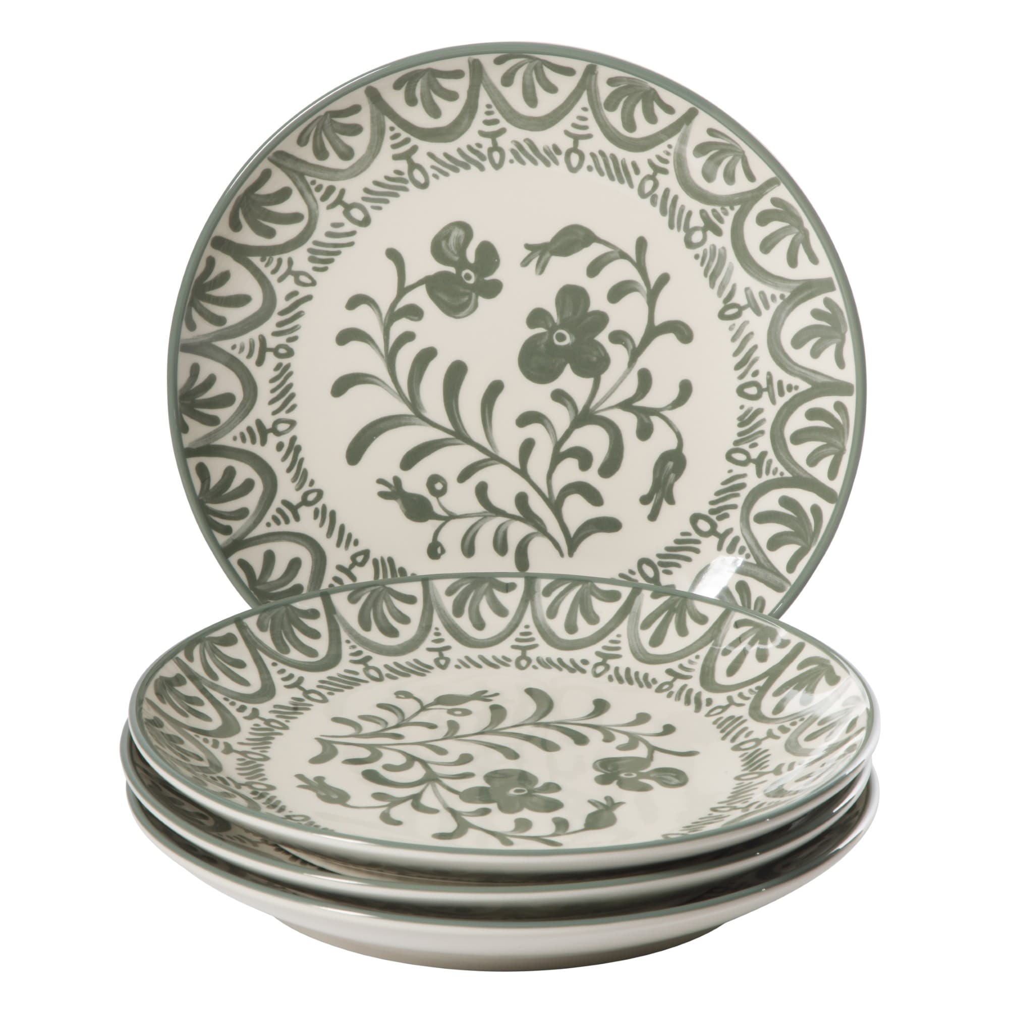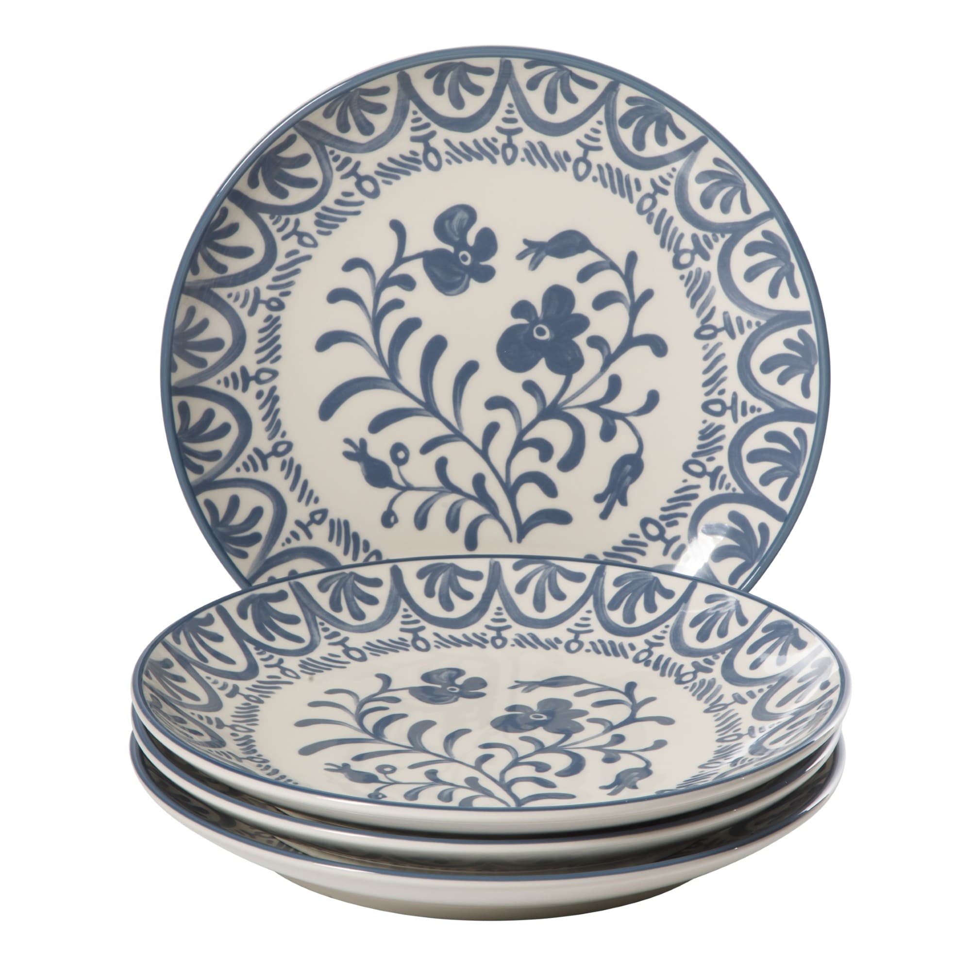 Bloomhouse - 2-Time Oprah's Favorite Things - Valencia Flor 4 Piece 10.75" Dinner Plate Set, Stoneware Floral Decal Design
