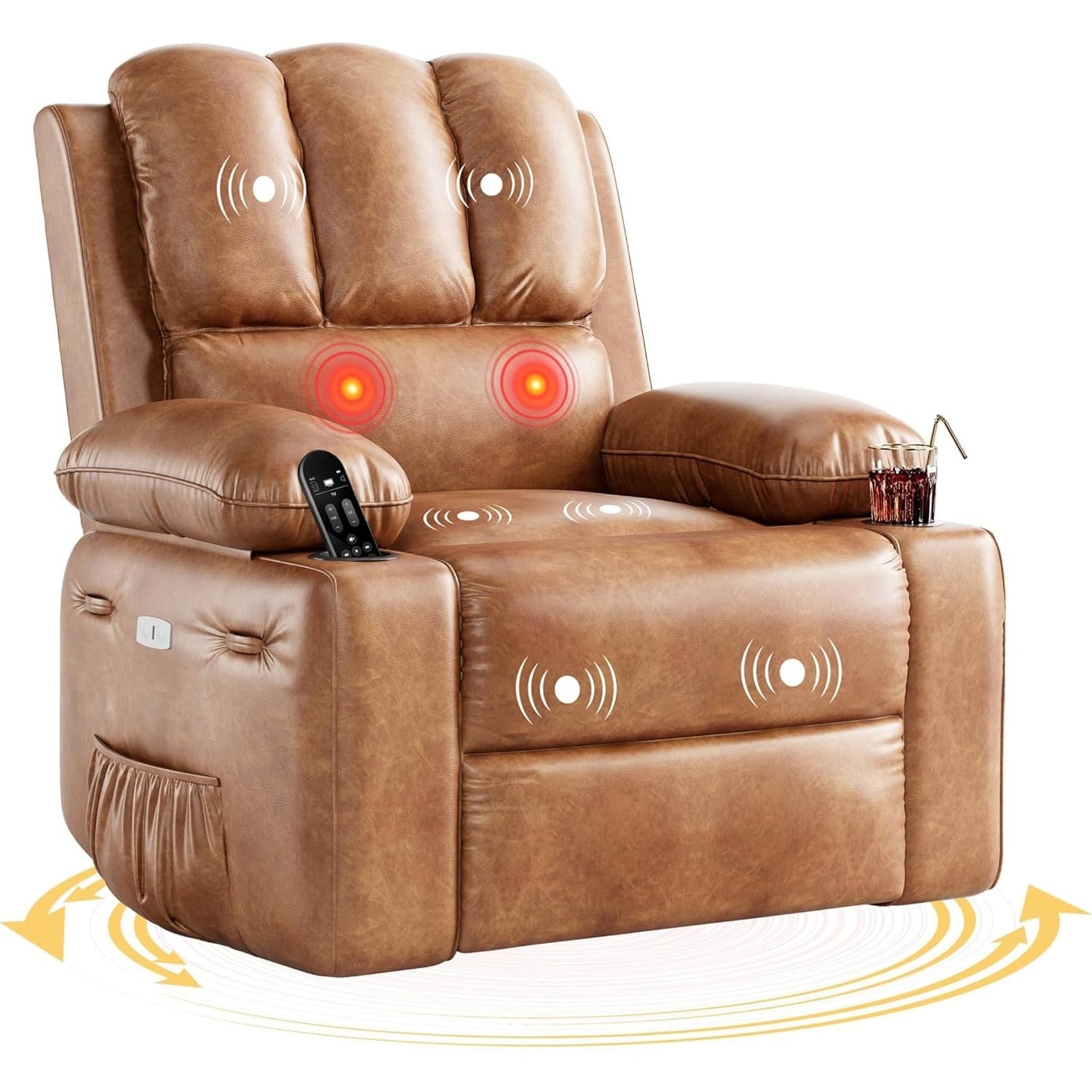 Wide Seat Durable Leather Massage and Heat Recliner