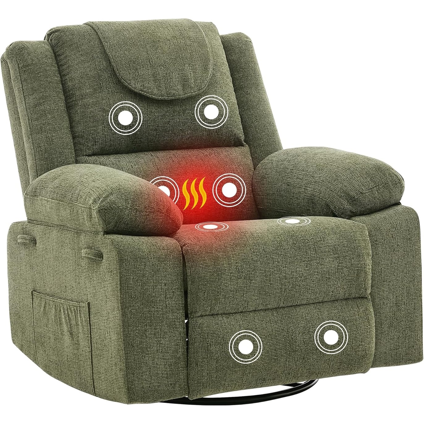 Rocking Nursery Glider Recliner Chair, 360° Swivel Rock Recliner Chairs Single Sofa with Vibration Massage and Heating