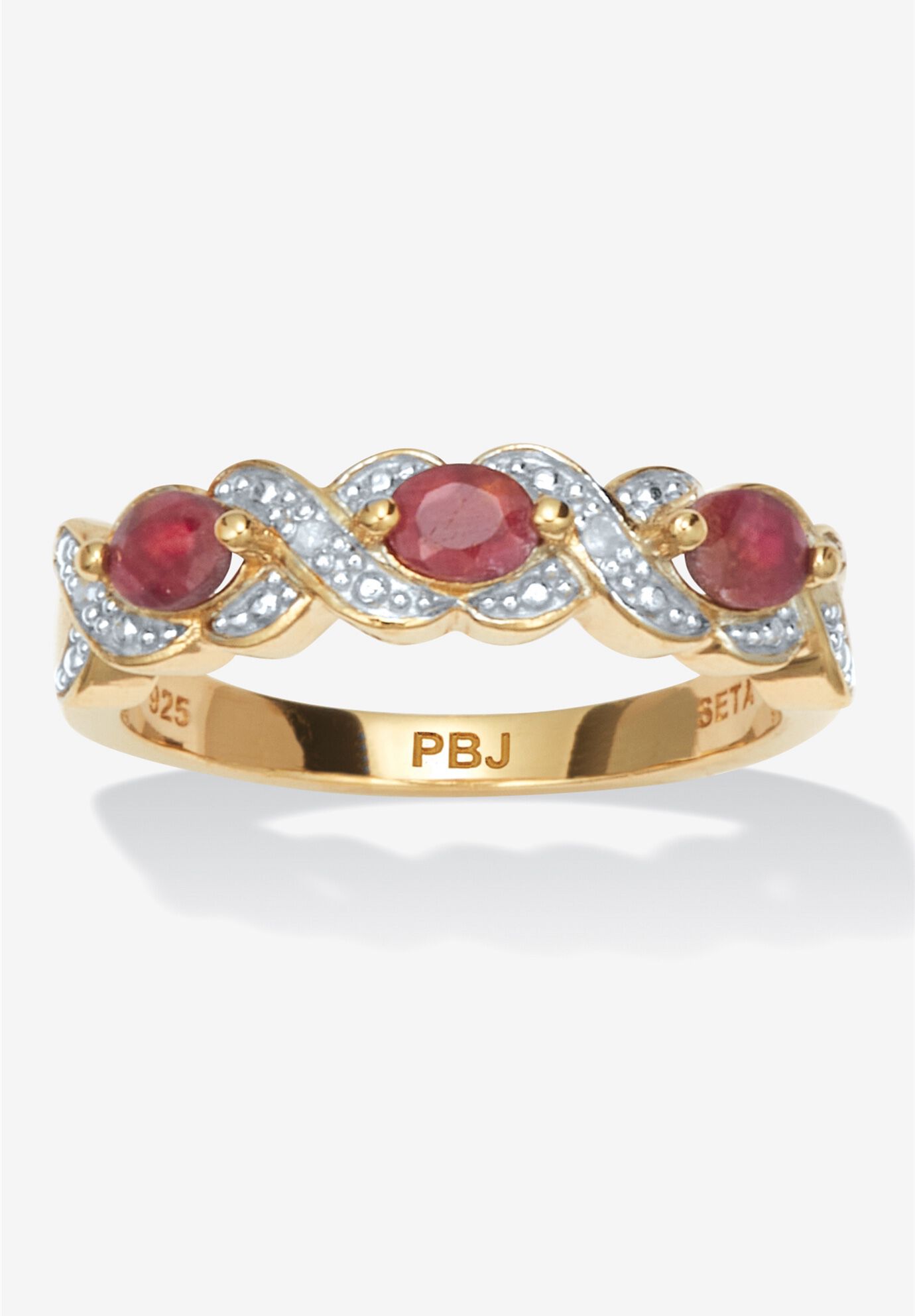 Women's .62 Tcw Oval Genuine Ruby Diamond Accent 18K Gold-Plated Sterling Silver Ring by PalmBeach Jewelry in Red (Size 10)