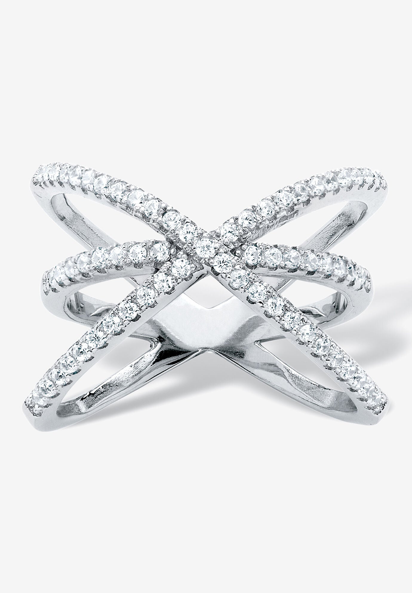 Women's .57 Tcw Cubic Zirconia Sterling Silver Micro Pave Crossover Ring by PalmBeach Jewelry in Silver (Size 9)