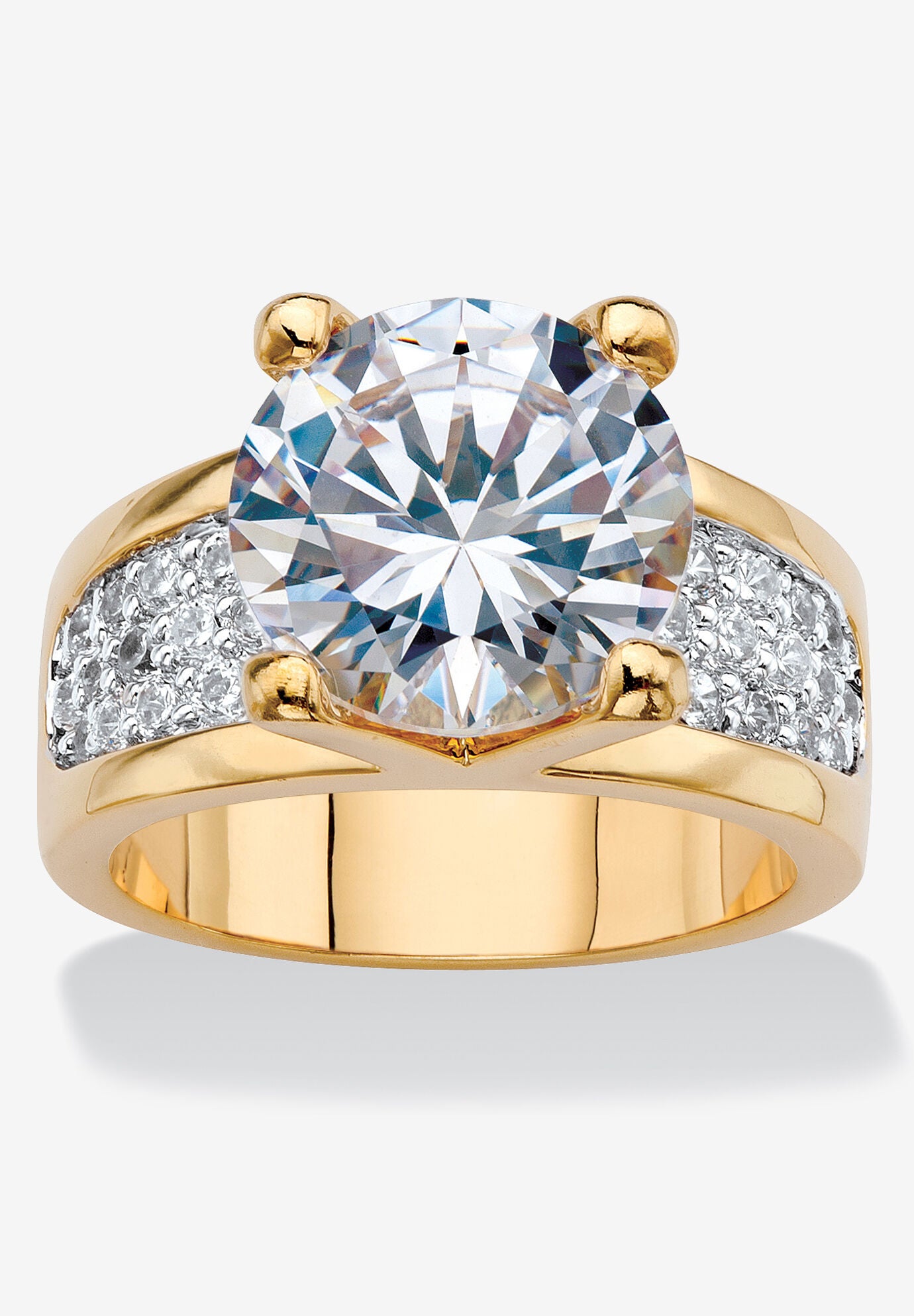 Women's Yellow Gold-Plated Round Engagement Anniversary Ring Cubic Zirconia by PalmBeach Jewelry in Gold (Size 10)
