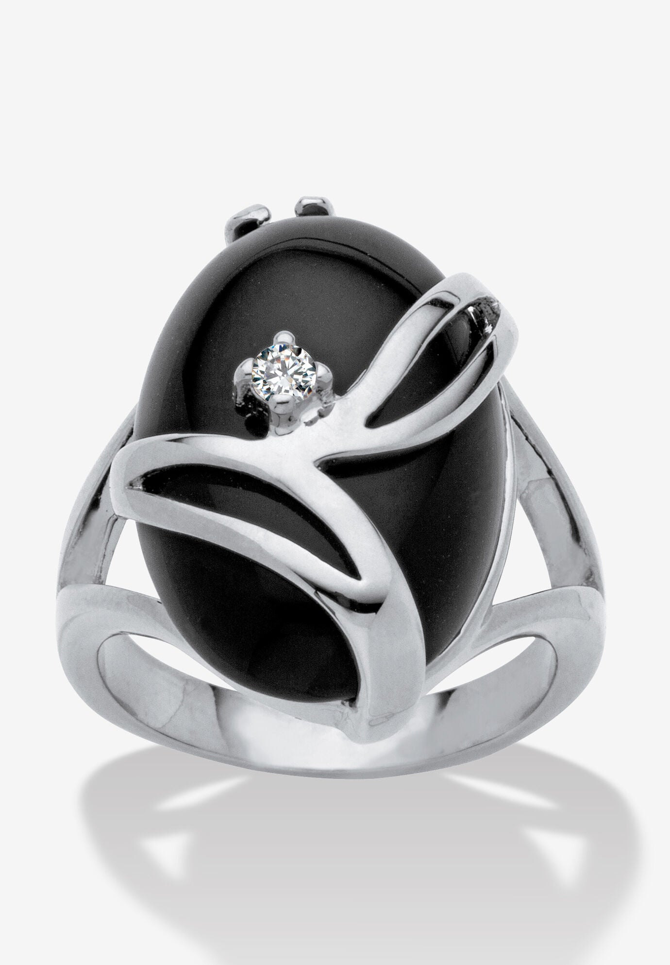 Women's Oval-Shaped Onyx & Crystal Accent Cocktail Ring In Platinum-Plated by PalmBeach Jewelry in Black (Size 6)