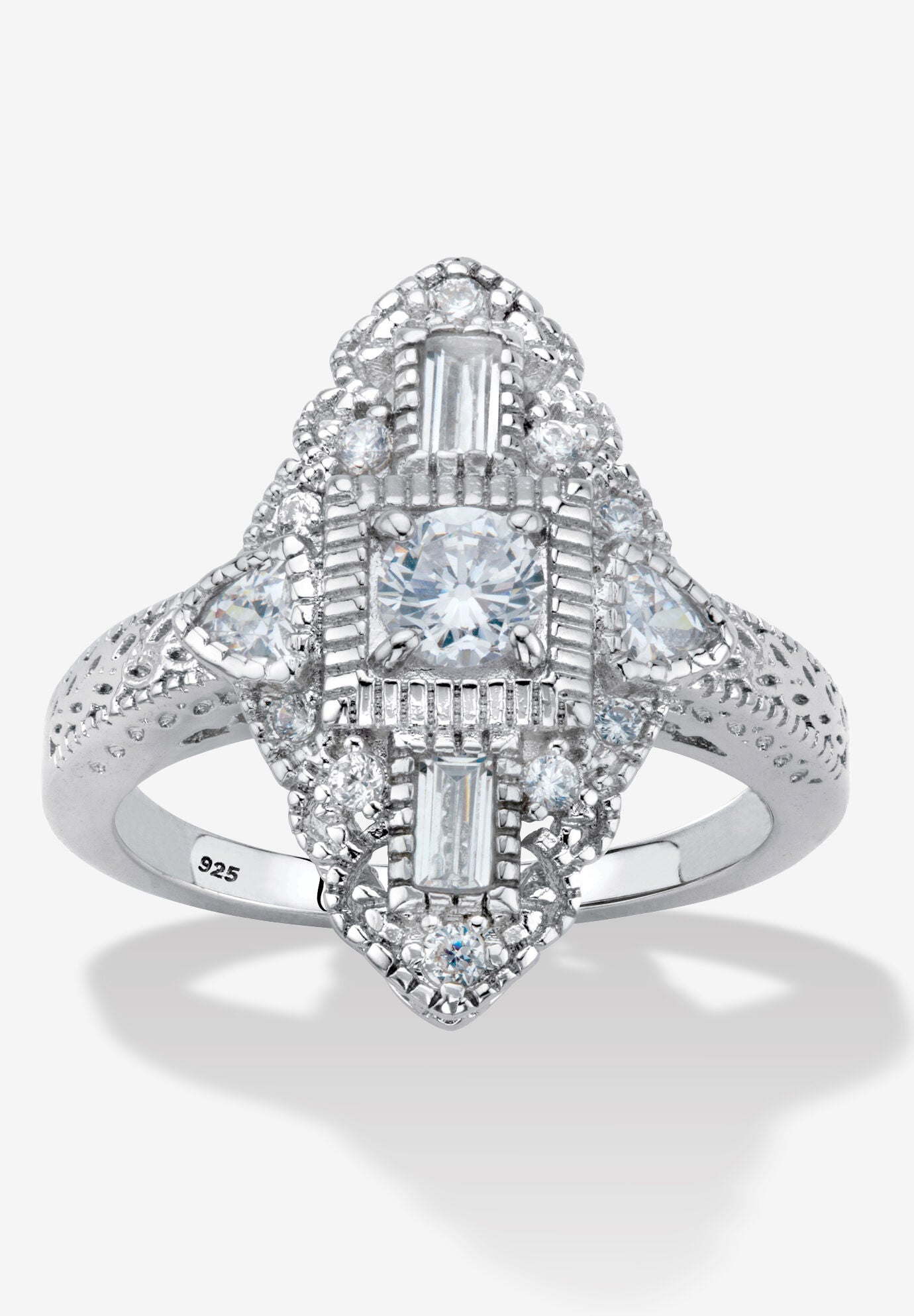 Women's 1.03 Cttw. Round Cubic Zirconia Platinum-Plated Sterling Silver Art Deco-Style Ring by PalmBeach Jewelry in Silver (Size 8)
