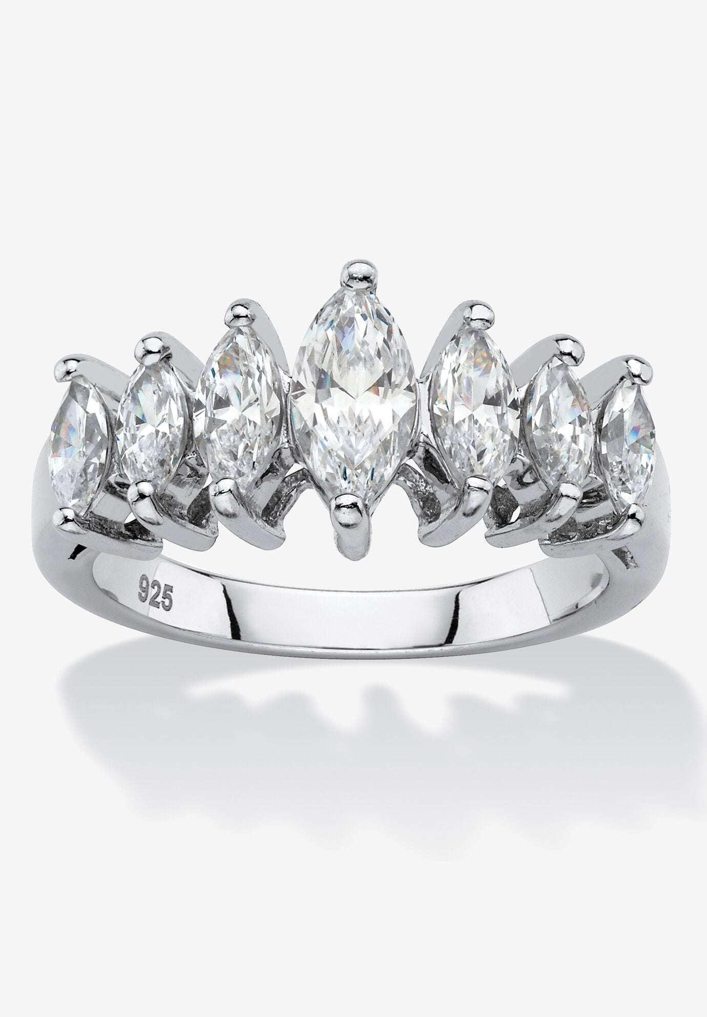 Women's 1.50 Cttw Platinum-Plated Sterling Silver Marquise-Cut Cubic Zirconia Anniversary Band by PalmBeach Jewelry in Silver (Size 10)