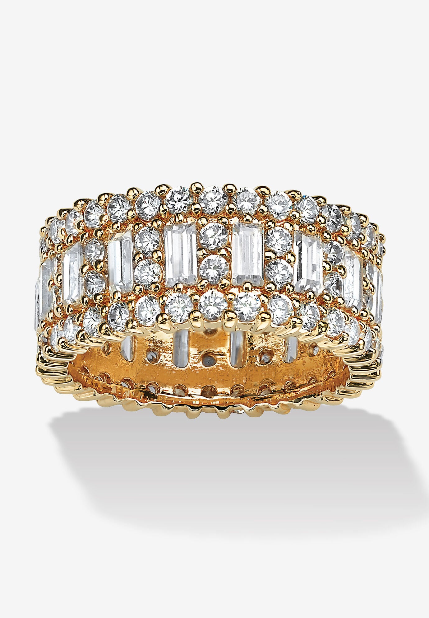 Women's 4.80 Tcw Emerald-Cut Cubic Zirconia Yellow Gold-Plated Eternity Ring by PalmBeach Jewelry in Gold (Size 6)
