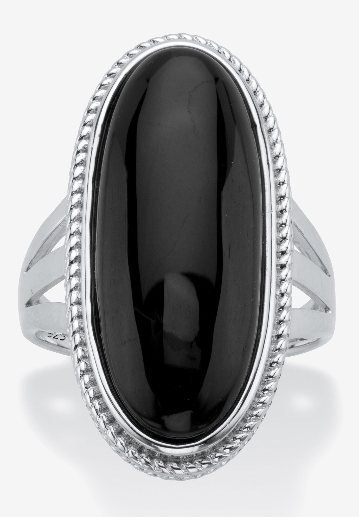 Women's Sterling Silver Natural Black Onyx Split Shank Ring by PalmBeach Jewelry in Onyx (Size 7)