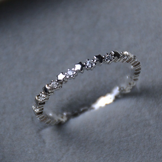 Authentic Stackable Clear CZ Sterling Silver Stars Ring Luxury Women's Wedding Gift 7